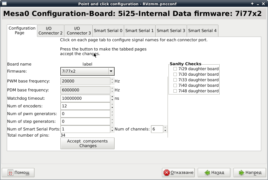 В pncconf вьйбрал 7i77 x2 ,не понимаю из что ошибки.
