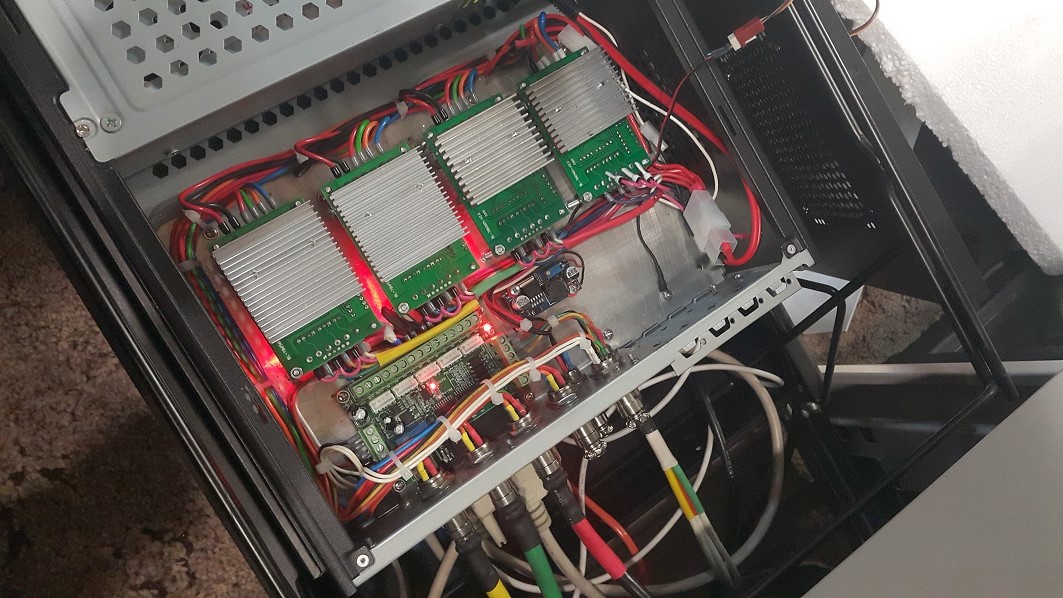 В таком же миниатюрном корпусе размещен БП, драйвера и интерфейсная плата.