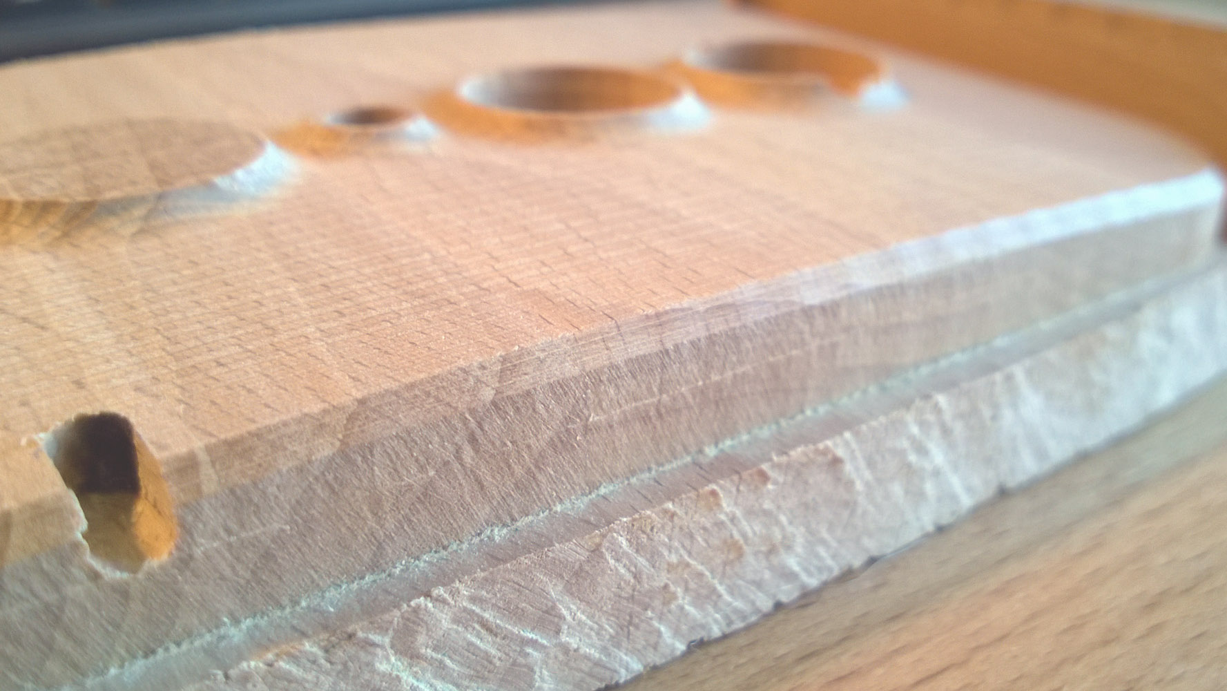 Проблема у меня возникла, когда я попытался прорезать паз самой большой фрезой которая у меня есть (djtol A2LX642, на картинке левая) в куске дерева.