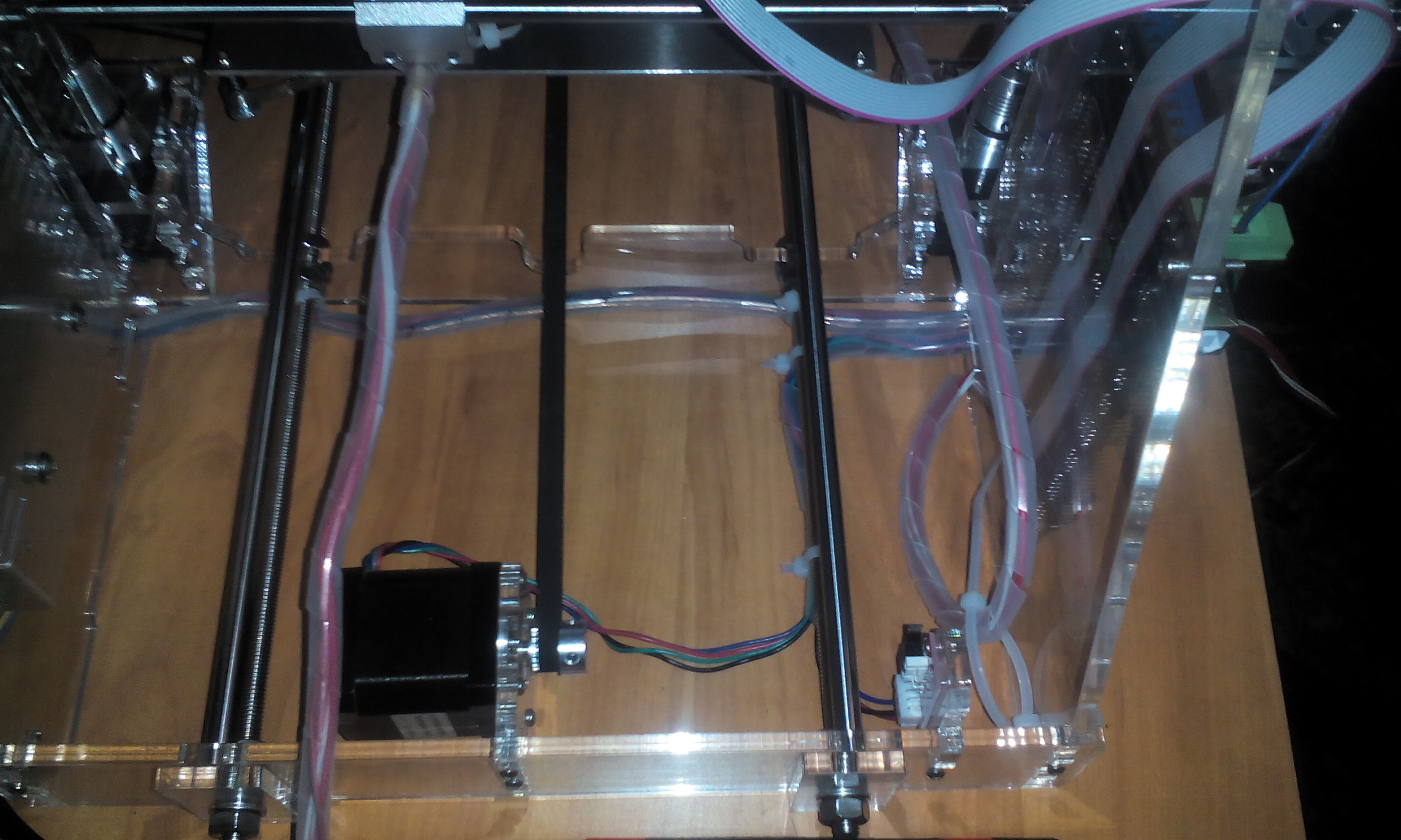 С проводами по большей части разобрался. Осталось только решить как расположить и закрепить "кабельканалы" до стола и экструдера. Сейчас один временно закреплен, другой просто валяется. Но оба уже подключены, т.к. уже хотелось поиграться немного.