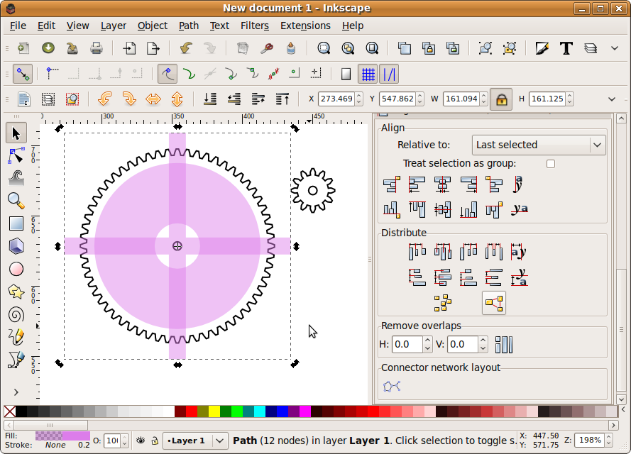 But do not worry it should look like that. To see how your gear will look like after cutting, set fill to some color, stroke to white