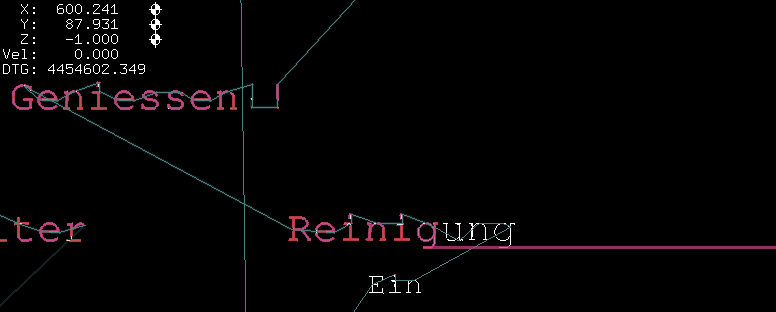 I'm great fan of cnc-club and milled several projects so far. Yesterday I experienced a problem. The code seemed to be finde on EMC2 (Ubuntu 10.04). But when milling, it follows on a huge radius, when I understand the G-code, see picture and see what I mean. (I tried two fonts, Comics Sans / Tlwg Typist)