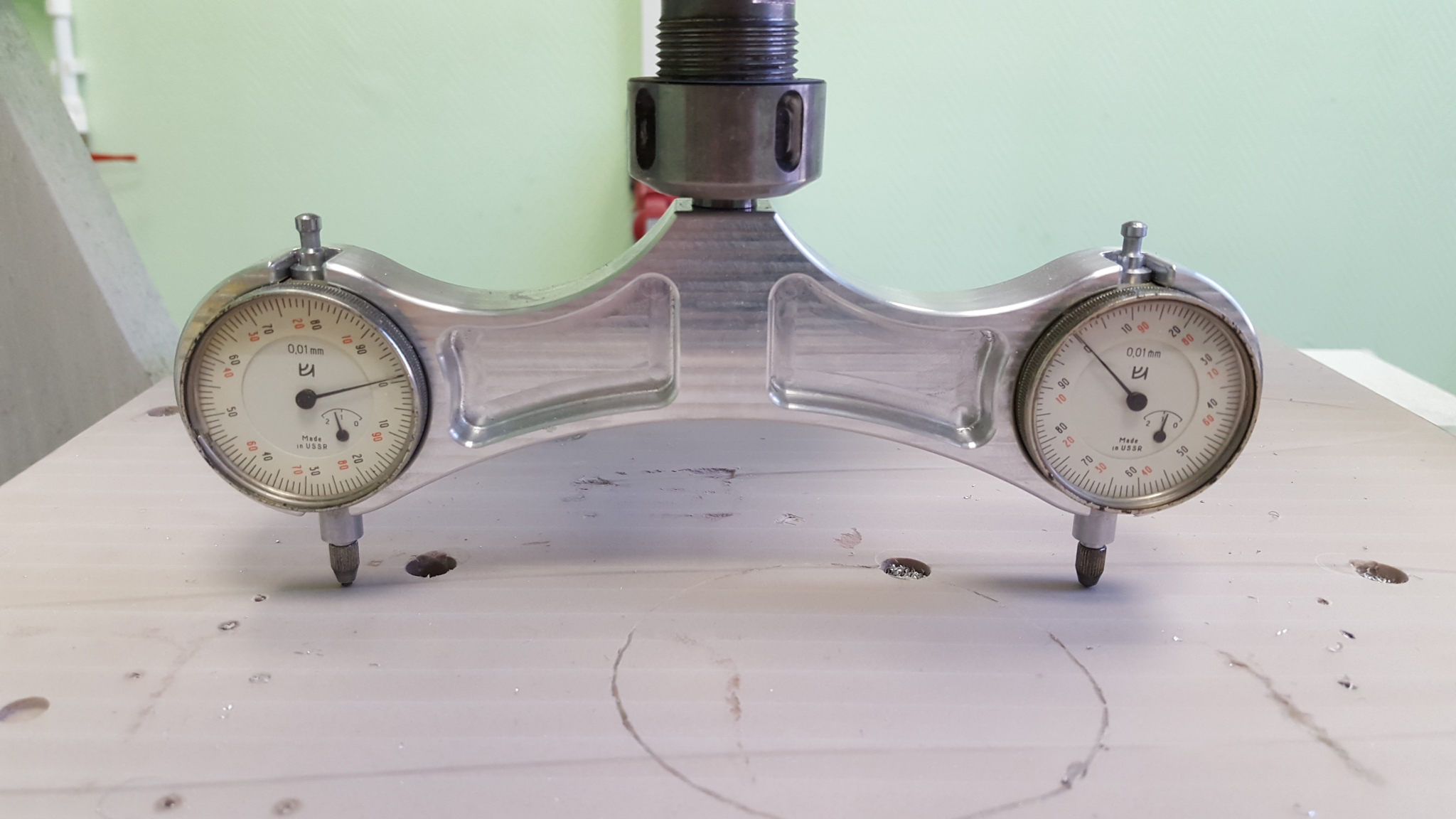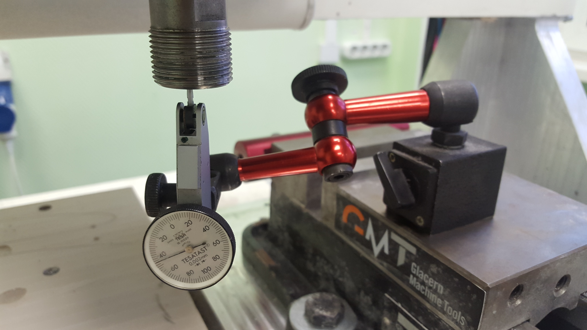Между осями индикаторов 150мм сколько у оригинала незнаю там все в дюймах даже шкалы. Вал запресован (хвостовик от фрезы) индикаторы привинчены винтами в те отверстия где у них крышка крепилась.