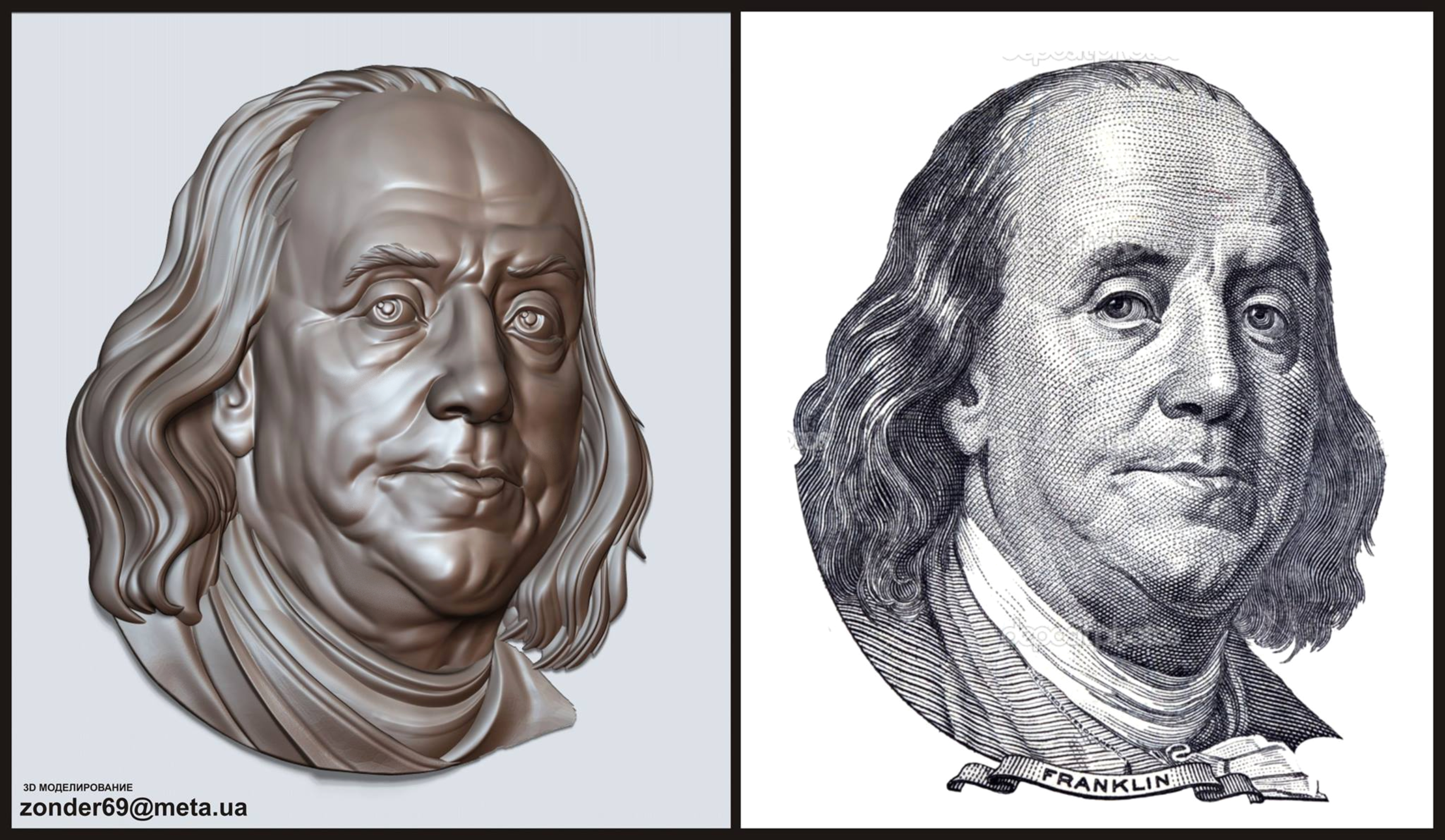 Портрет Бенджамин Франклин – барельеф под ЧПУ для серийного производства