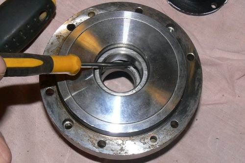 Мужики, огромное спасибо. Нагрели гайку, пробовал без нагрева - никак. Открыл. Подшипники не дуплекс, между ними "вкладыш". Один подшипник, со стороны патрона живой, у второго конечно износ. Решил пока мазать, закрывать, пробовать работать и заказывать подшипники.