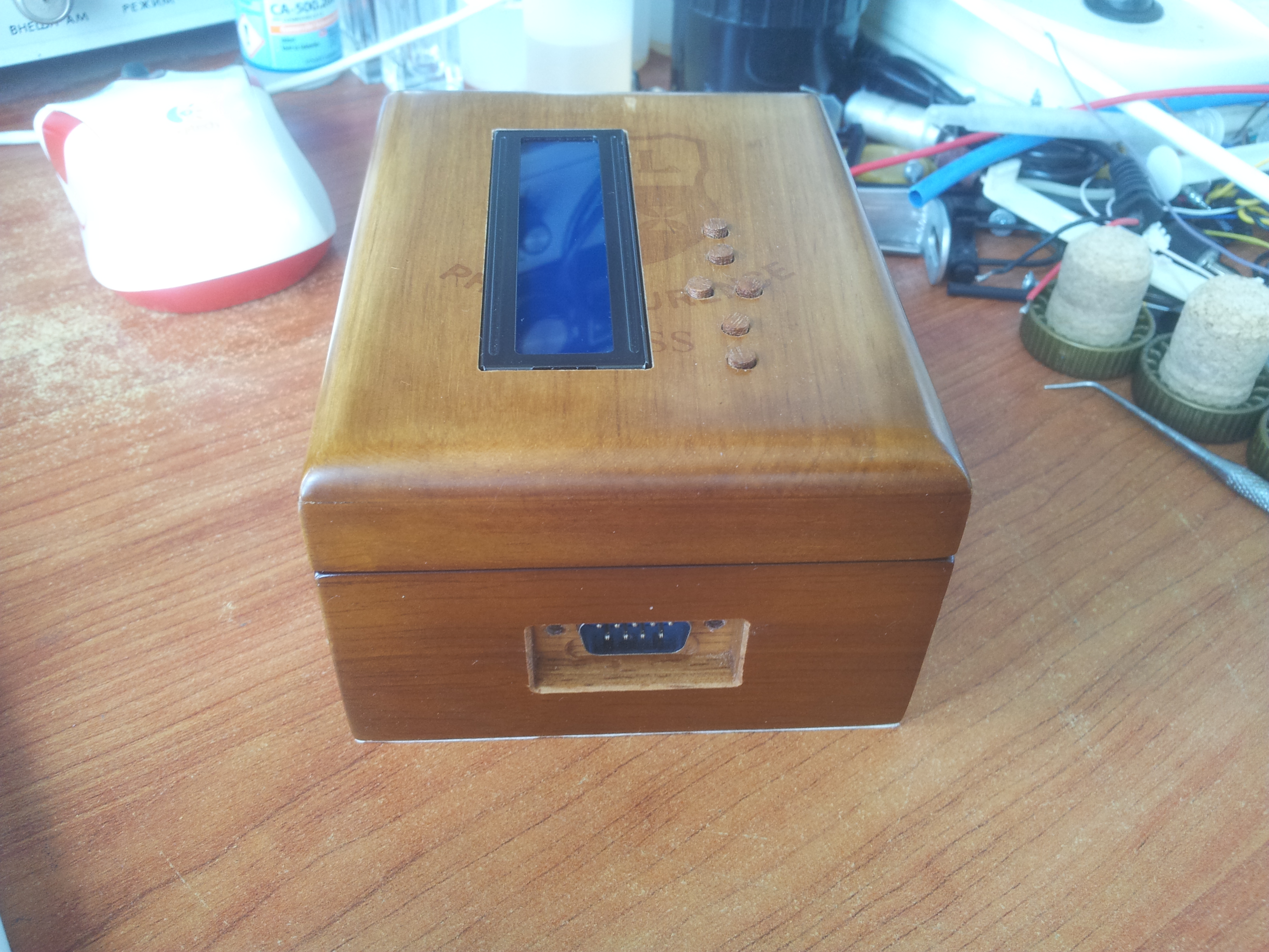 Электронику разместил в деревянной коробочке
