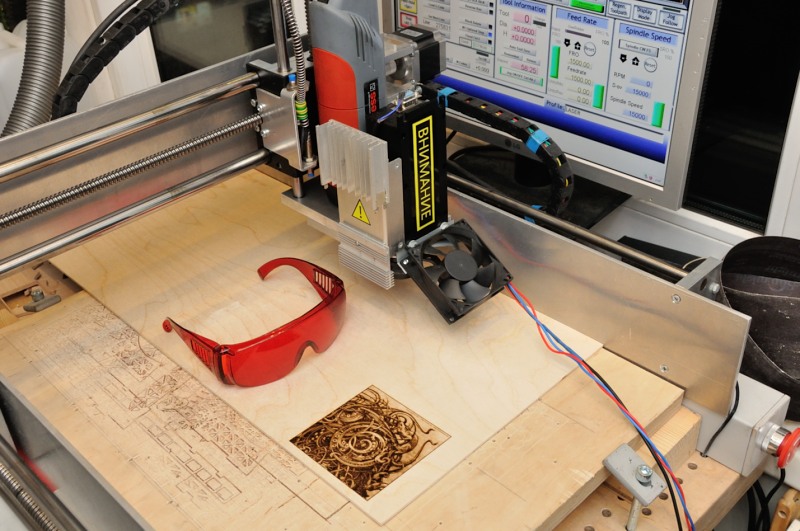 Приобрёл на eBay 2-х ватный синий (445 нм.) полупроводниковый лазер с ШИМ управлением. Задумка была такая: после фрезеровки, например, деревянного рельефа, выжечь лазером необходимый рисунок лазером. Причём не только битовый, но и растровый.
