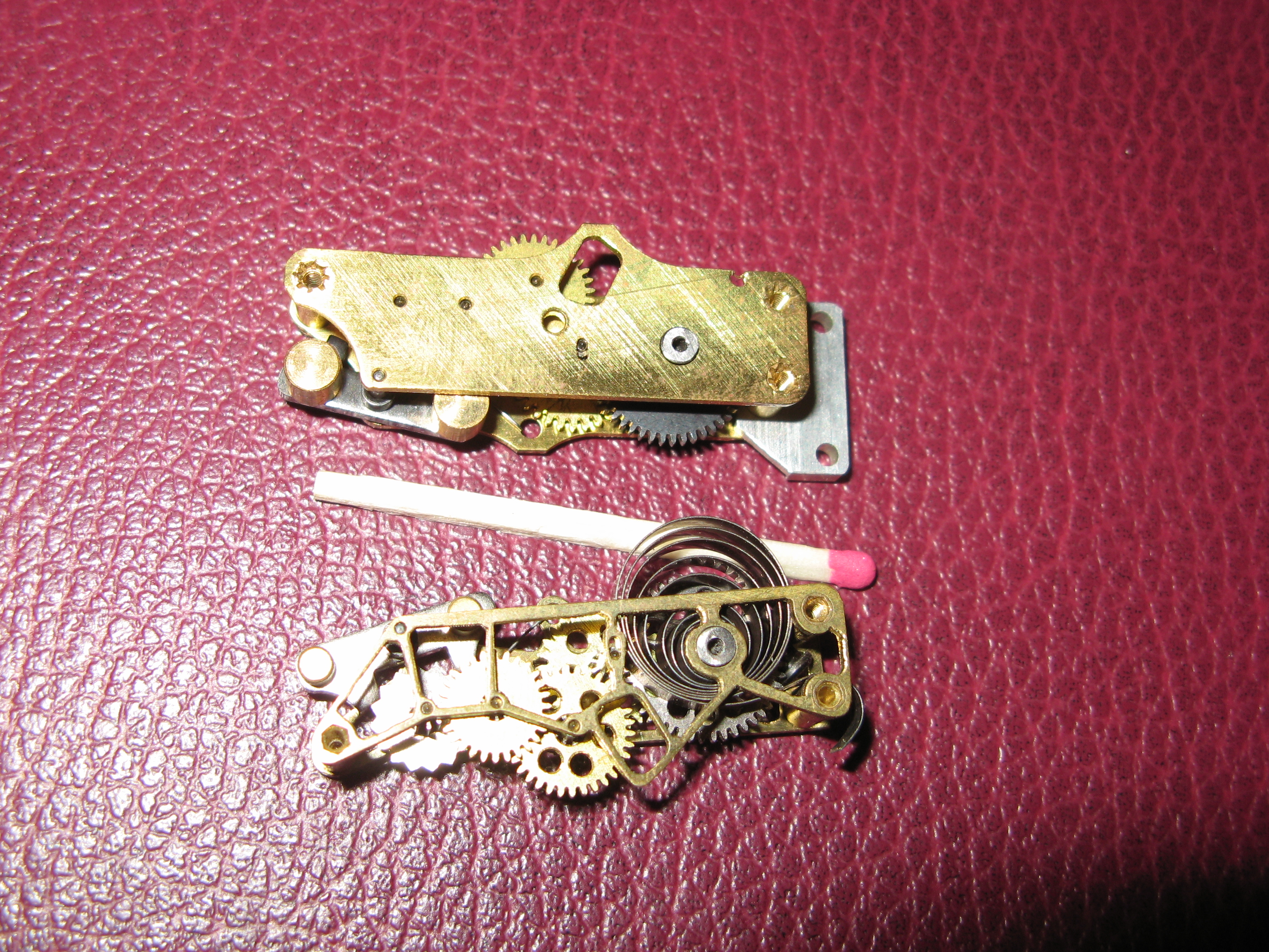 полез в ящик, достал коробочку с недоделанными бобышками, вручную облегченным таймером (рядом лежит обычно облегченный планерный вариант. он перелицован если кому интересно). пилил лобзиком, допиливал надфилем. шестеренки сверлил для облегчения где это можно было сделать... еще нашел свой раберхолдер, но с трубочкой. основная идея чтобы накручивать мотор отдельно от модели а потом вставлять. так вот на трубочке все держится пока накручивается