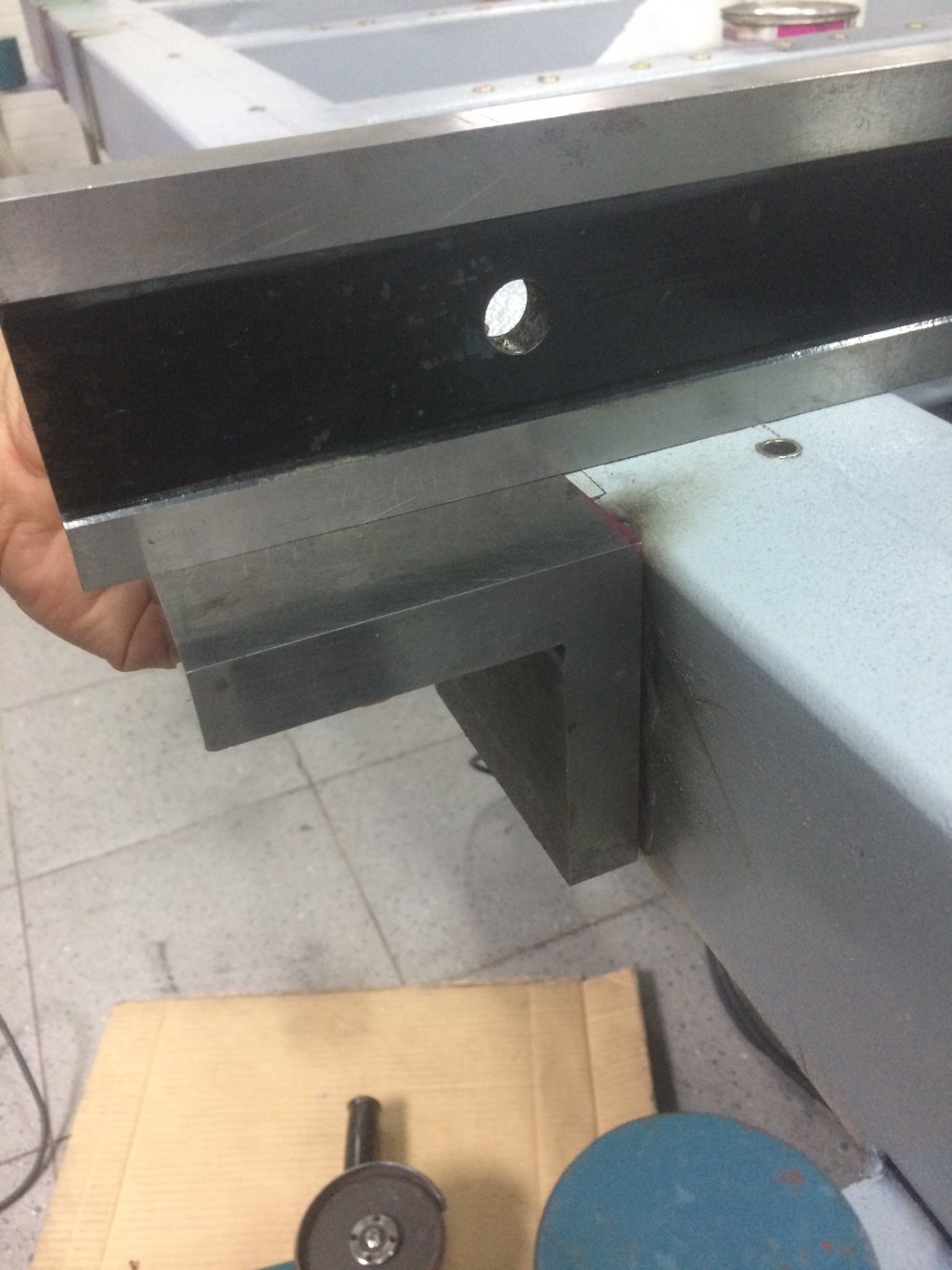 Принял решение исправлять. Начал с балки оси Y. На плоскости установки рельс обнаружился посередине горб в 1,7 мм. Поверхность под рейку вообще была не обработана.