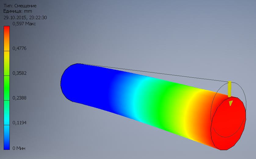 тот же первый пруток, но в виде трубки со стенками 2мм. те же нагрузки, те же размеры. масса 32 гр.