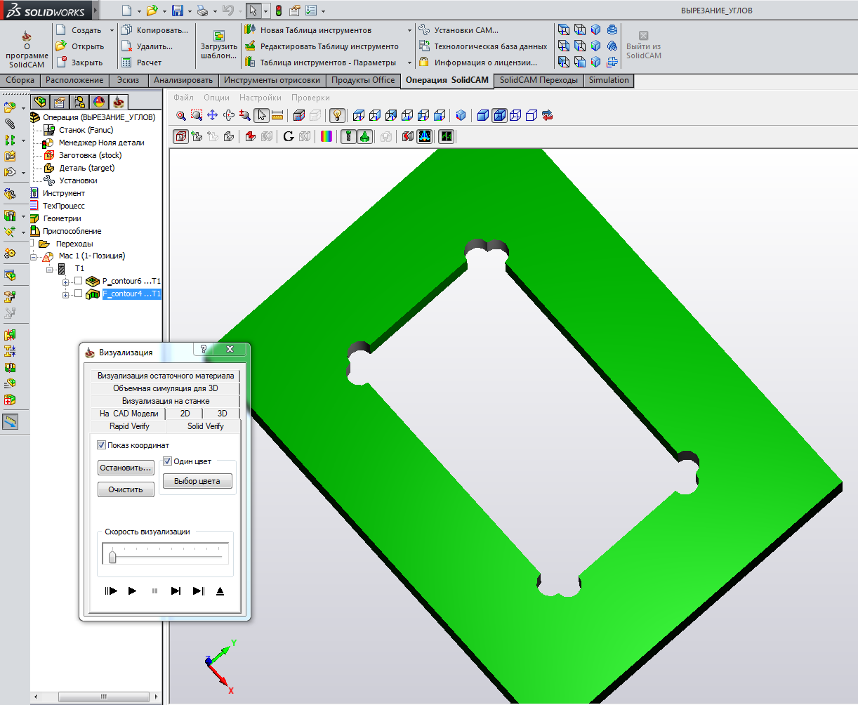 Вроде прочитал уже все ветки посвященные SolidCam'у но не могу найти найти, как обработать карман с углами под сопряжение с прямоугольной или квадратной деталью. Где поставить галочку или выбрать стратегию :thinking:
