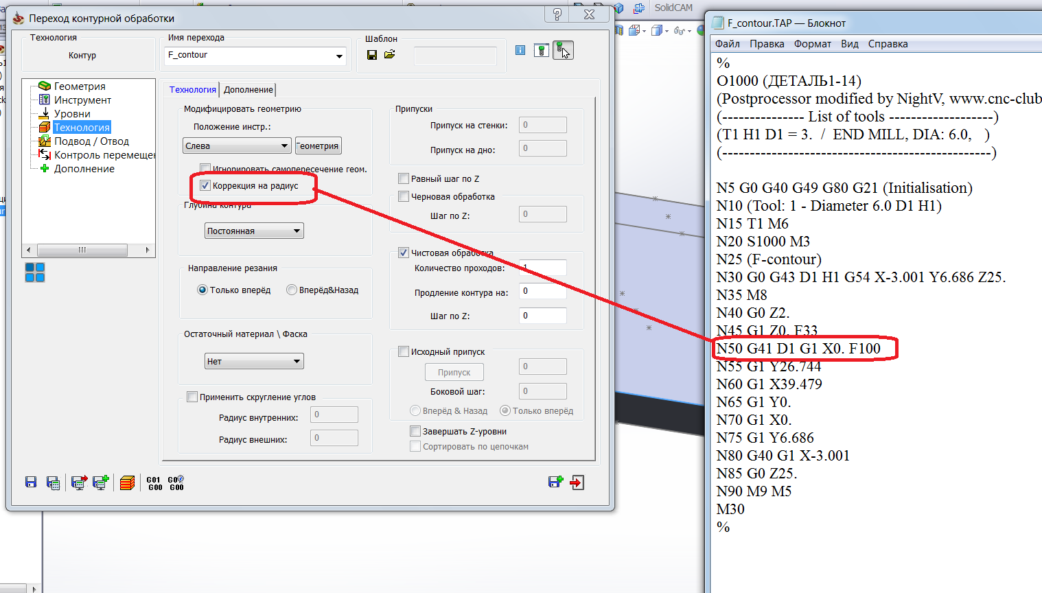 Значит кто то в СолидКаме указывает компенсацию инструмента ;)