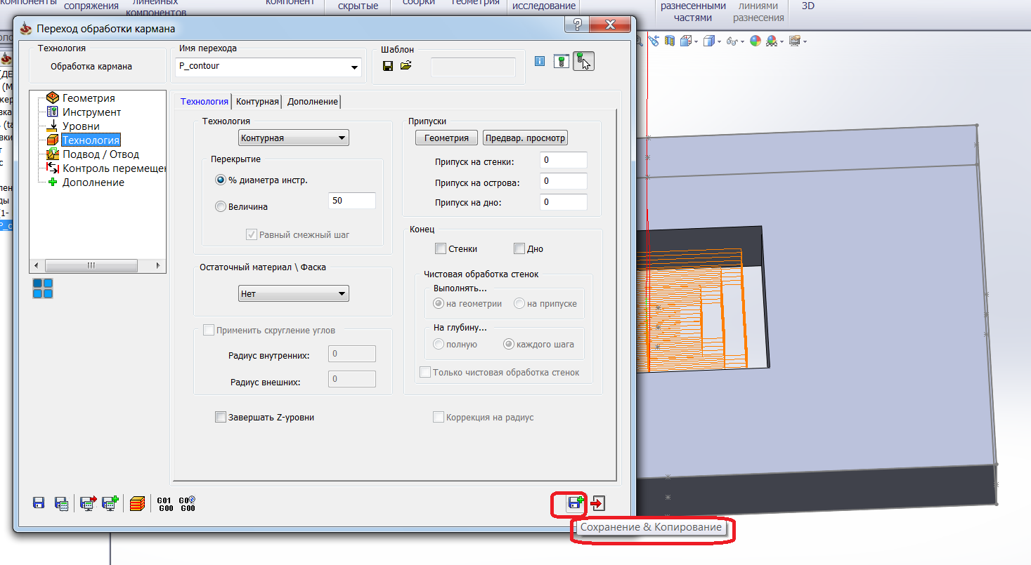 shalek писал(а):Нашел доработку, но почему-то на размер ругается. Пишет, что диаметр предыдущего инструмента должен быть больше. Ввожу 1мм - ругается. Прописал 7мм - построил траекторию. Как это доработку большим диаметром?