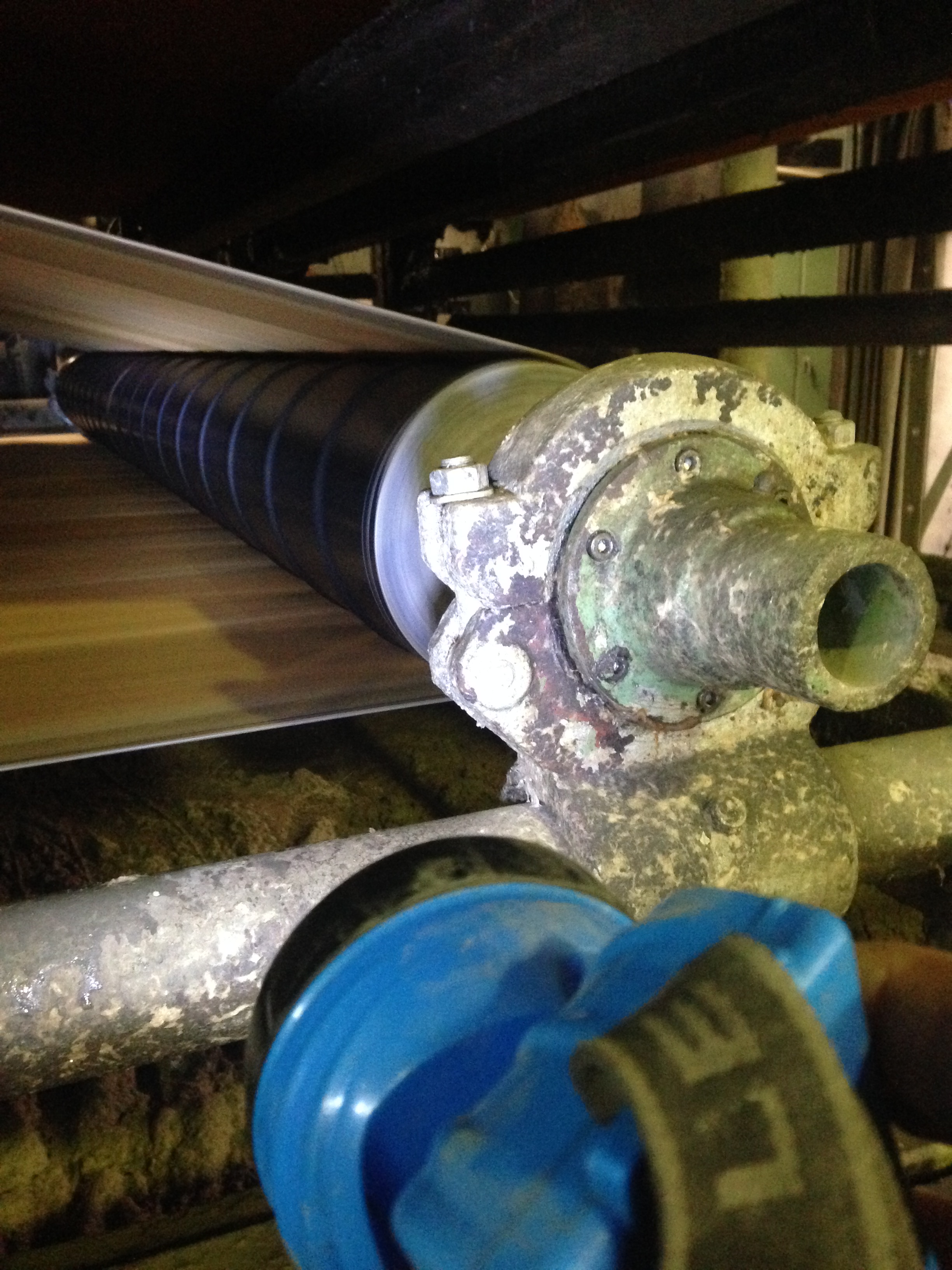 Подскажите пожалуйста кто сталкивался, что за вал на фото ? Перебрал весь интернет но не нашел производителя таких валов или хотя бы может быть кто нибудь знает его техническое название ? , он обрезиненный, сами спирали заодно с обрезиненовкой , выполнены спирали с разрывом посередине , идут от середины к краям, расправляя сукно.