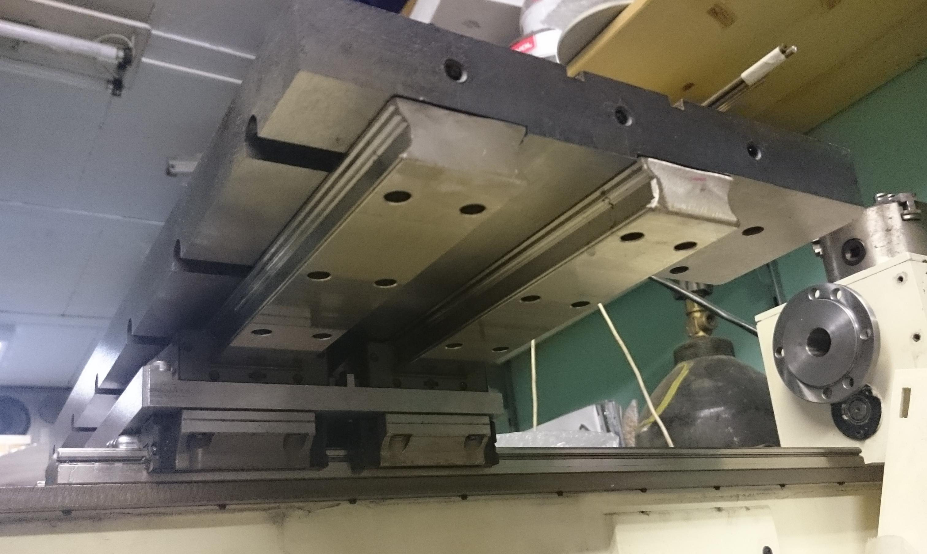на родные направляйки станока прекрасно садились широкие рельсы типа HRW27. под них все и делалось. на передней полке сделали упор под рельсу. сама рельса будет задавлена в него прижимами. задняя рельса устанавливается свободно.