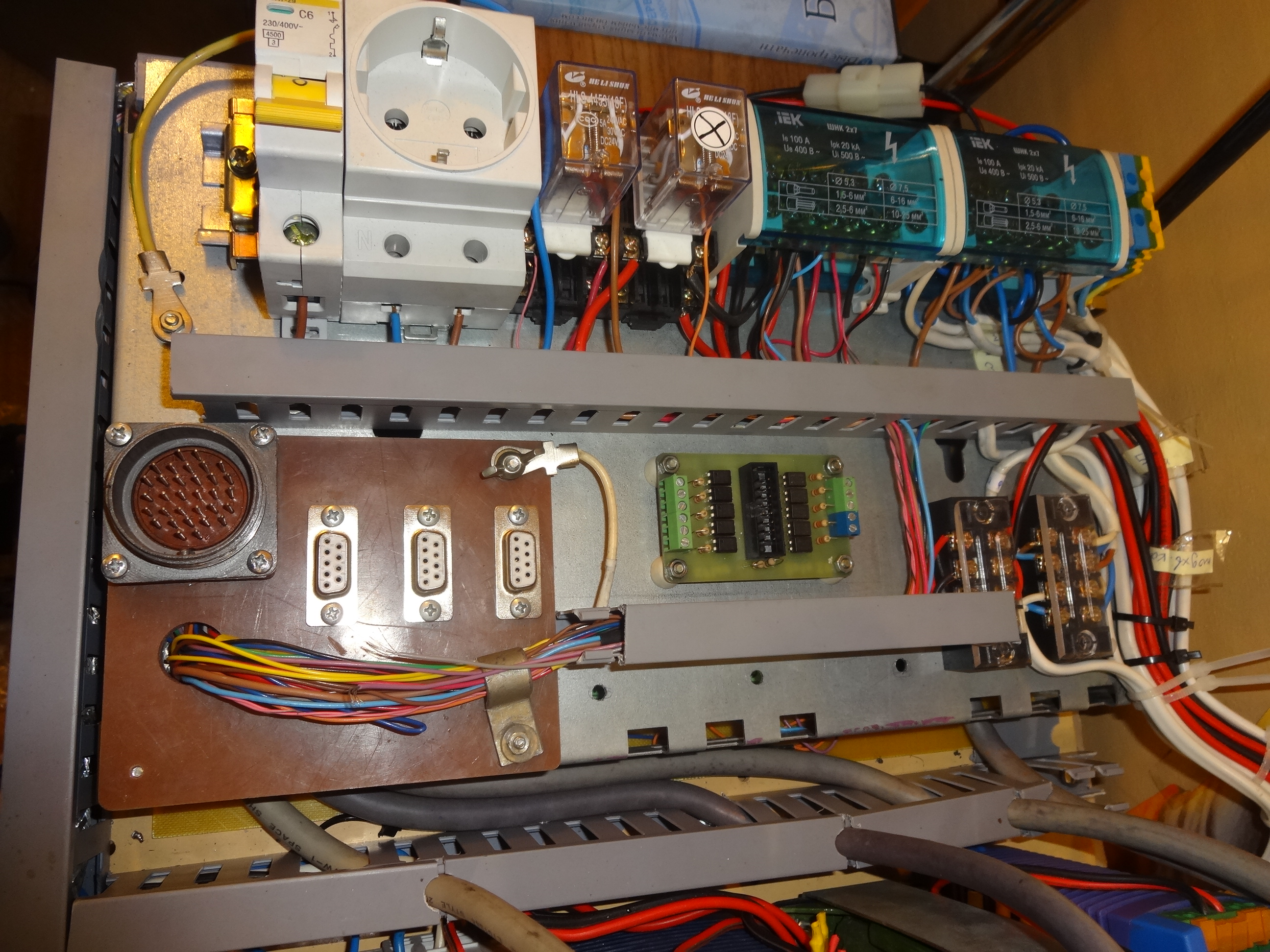 из-за плотного монтаа в блоке управления посте установки его в станок будет сложно подлезть к клеммам каналога. а к той стороне, где аналоговые входы-выходы вообще нереально.