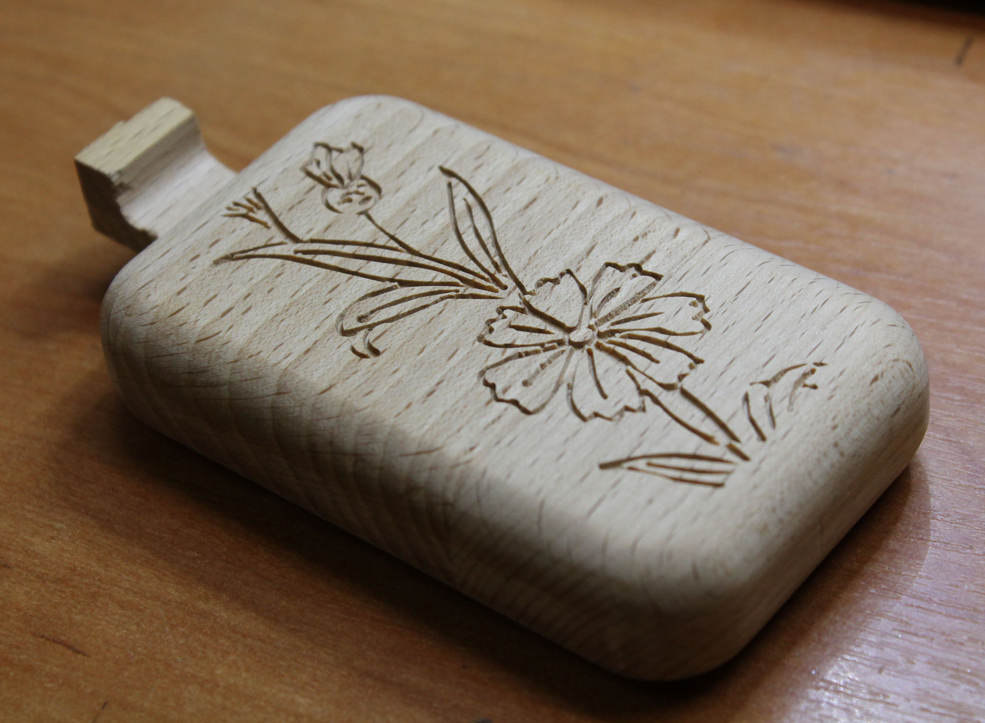 90х55 мм, бук, модель и УП готовились в Вектрик Аспайр, резалась с переворотом, легкая обработка мелкой наждачкой после станка.