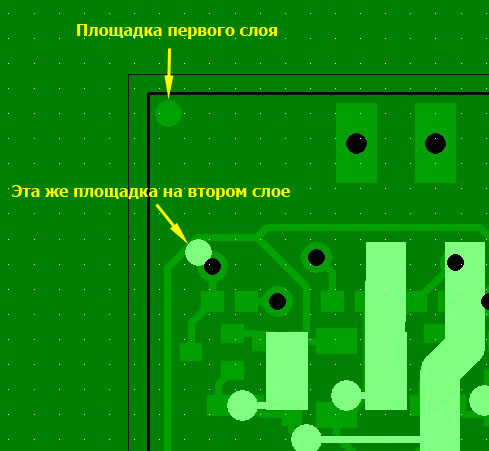 Диалог с предупреждением может повториться как для первого слоя. Если все было сделано правильно, то слои должны совпасть идеально – это как можно проверить по отверстиям или углам платы, увеличиваем угол с прицельным отверстием и проверяем: