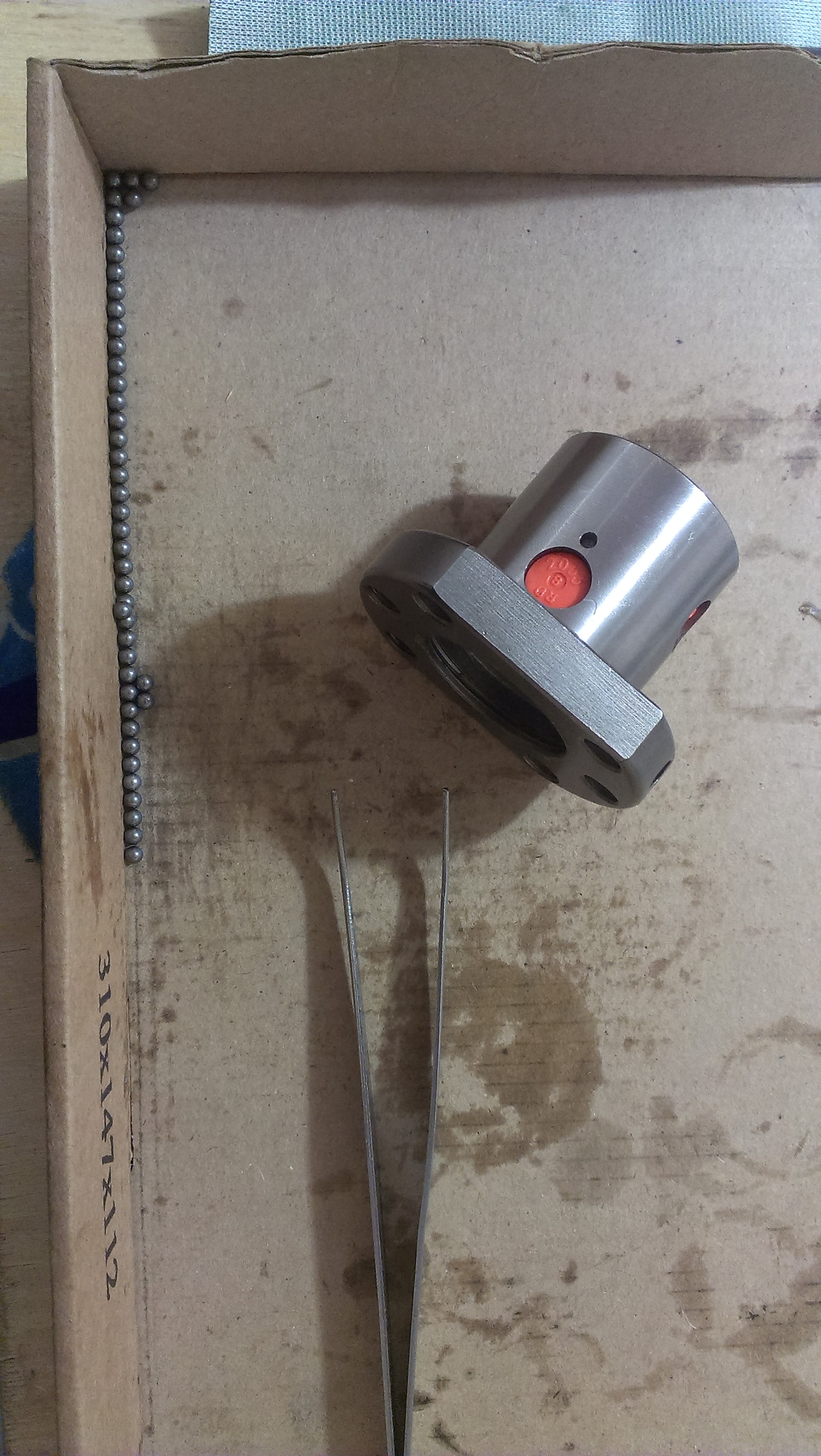 Пока сохнут детали станка решил разобрать , помыть , смазать гайки ШВП. Т.к. было обнаруженно в этой части два косяка. Первое , это то что в гайках ШВП прослушивались похрустывания как будто песочек в них. А второй косяк это кривизна одного винта, кривизна есть во всех винтах, но этот самый кривой, можно сказать кривущий.