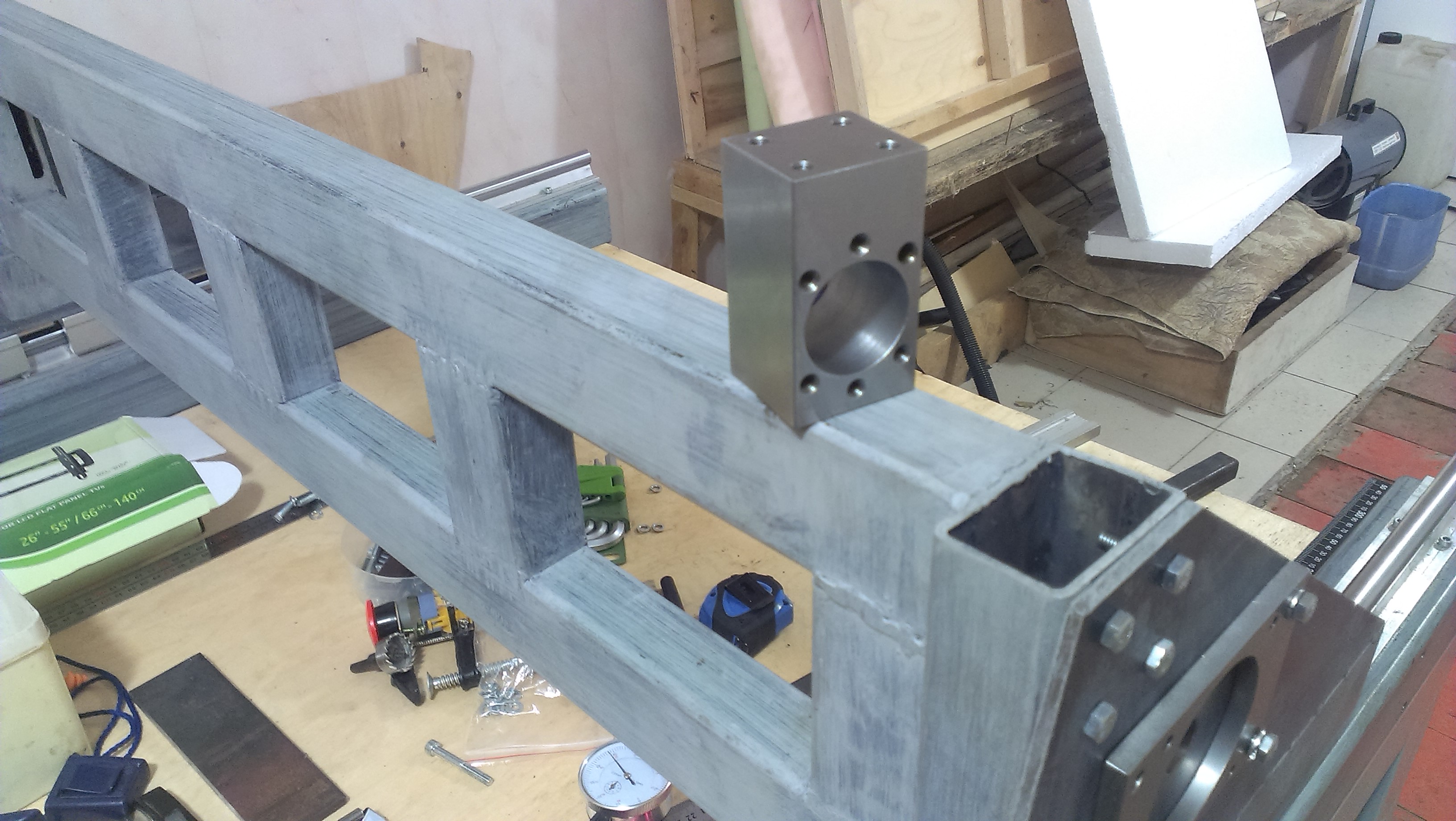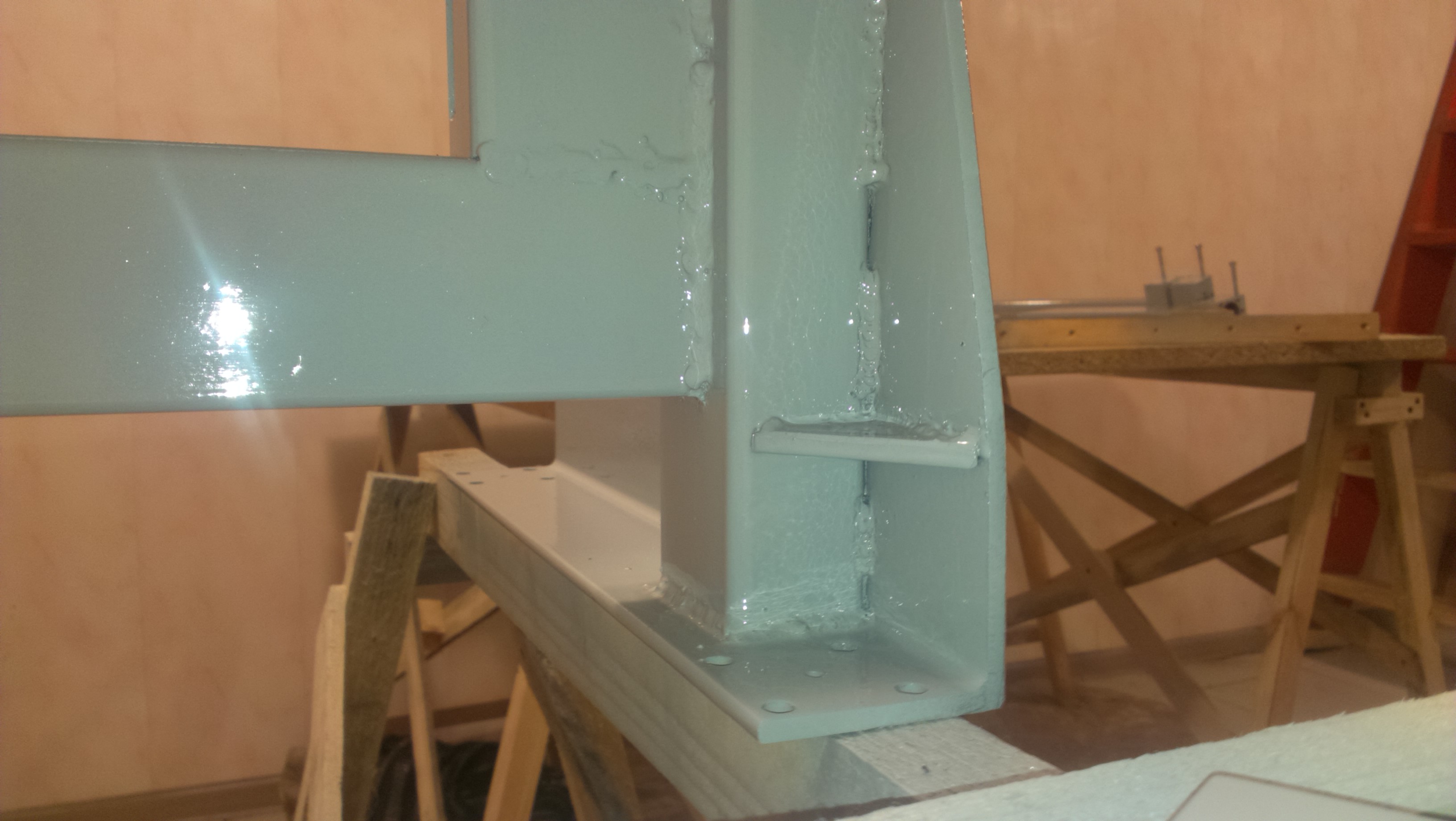 Немного побаловался и продолжил работу. Очередь дошла до портала. Было решено скрутить все болтами , т.е. поковые стойки прикрутить к раме.