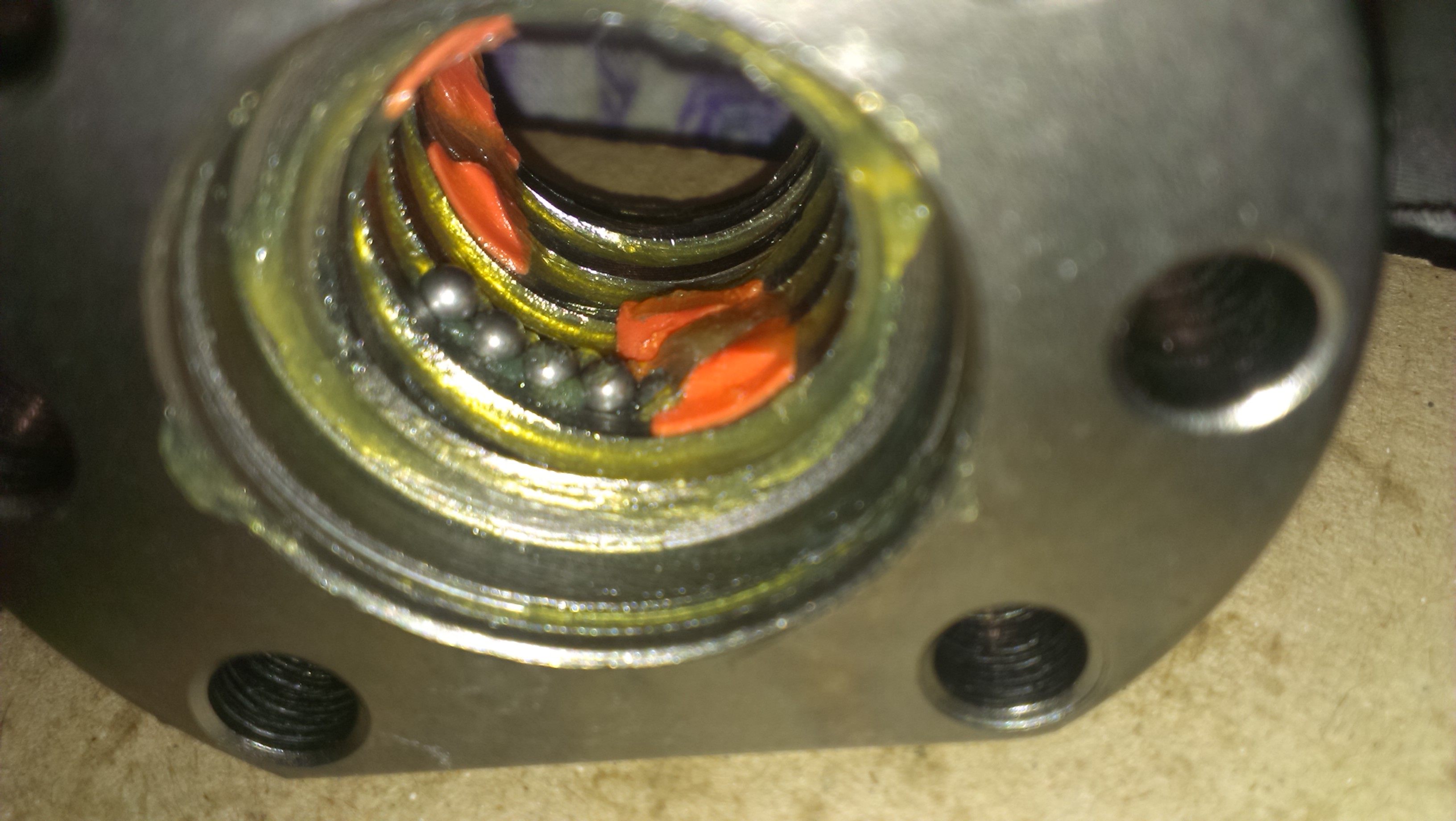 Пока сохнут детали станка решил разобрать , помыть , смазать гайки ШВП. Т.к. было обнаруженно в этой части два косяка. Первое , это то что в гайках ШВП прослушивались похрустывания как будто песочек в них. А второй косяк это кривизна одного винта, кривизна есть во всех винтах, но этот самый кривой, можно сказать кривущий.