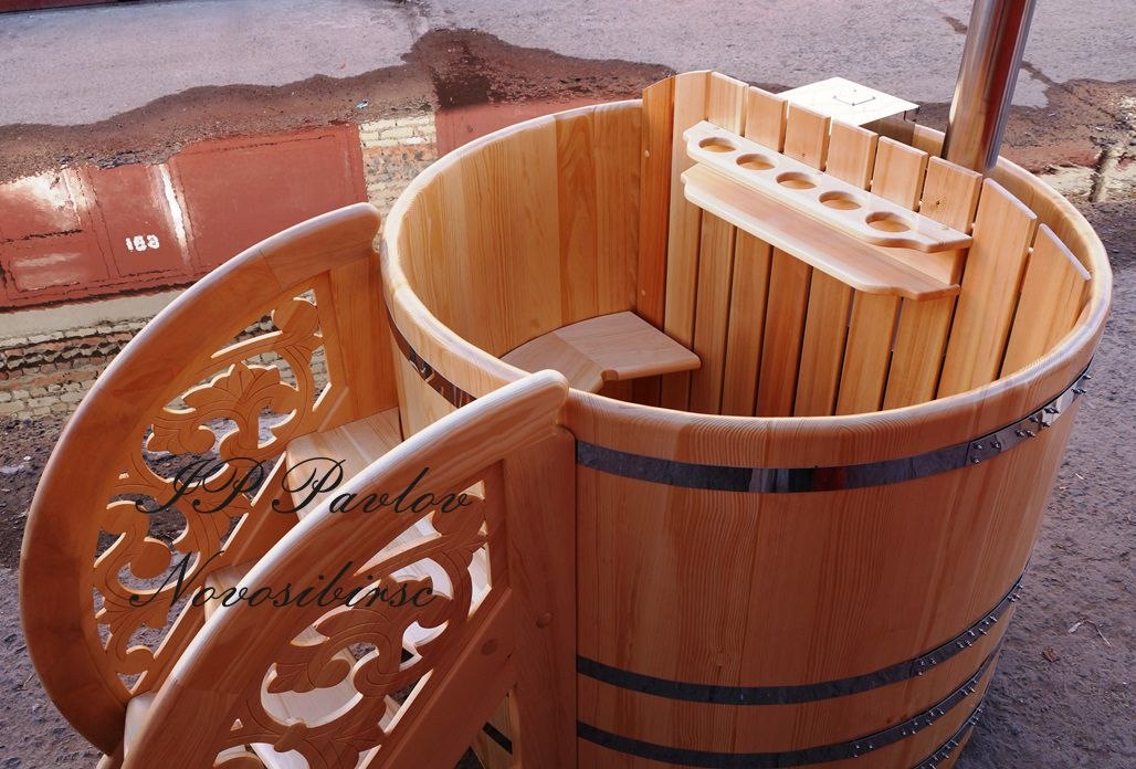 Тут еще видео выше выкладывал про японскую купель офуро с печкой на дровах. Вот, стащил фотки. Я на этой купели делал декоративную вставку на трапе, ну и по-мелочи шаблоны.
