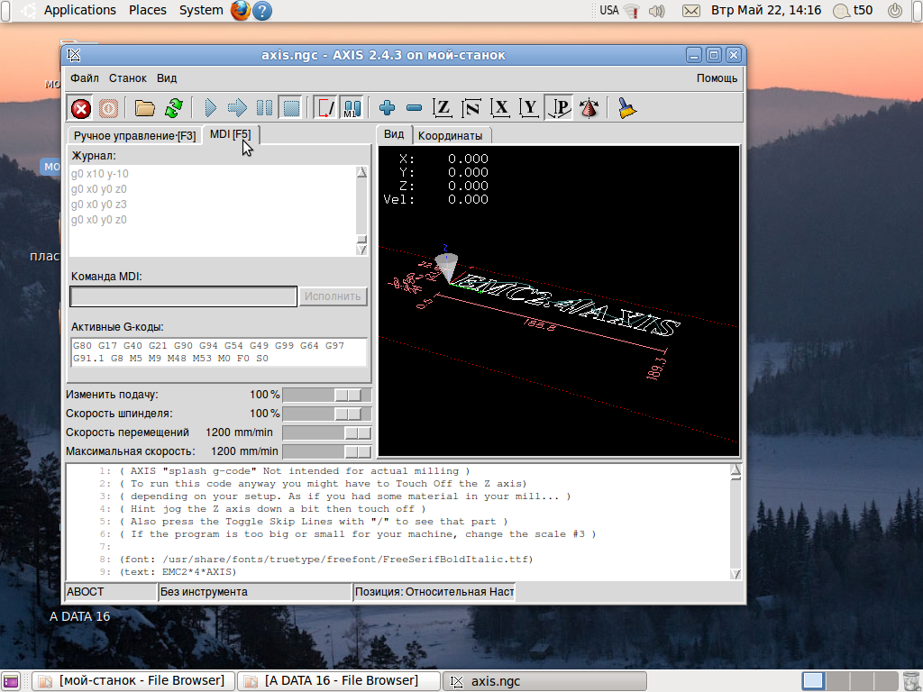 Обсуждение установки, настройки и использования LinuxCNC. Вопросы по Gкоду.