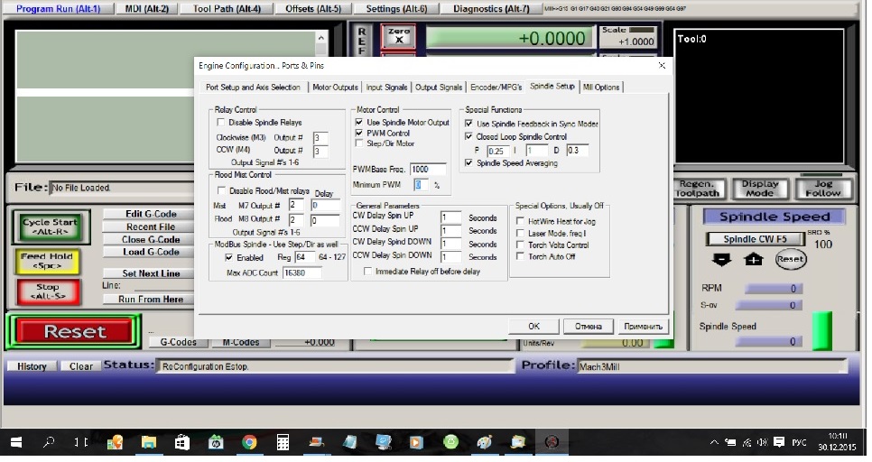 1. В сети гуляет документ на русском языке по конфигурированию Mach3, скачайте и вдумчиво прочтите его.