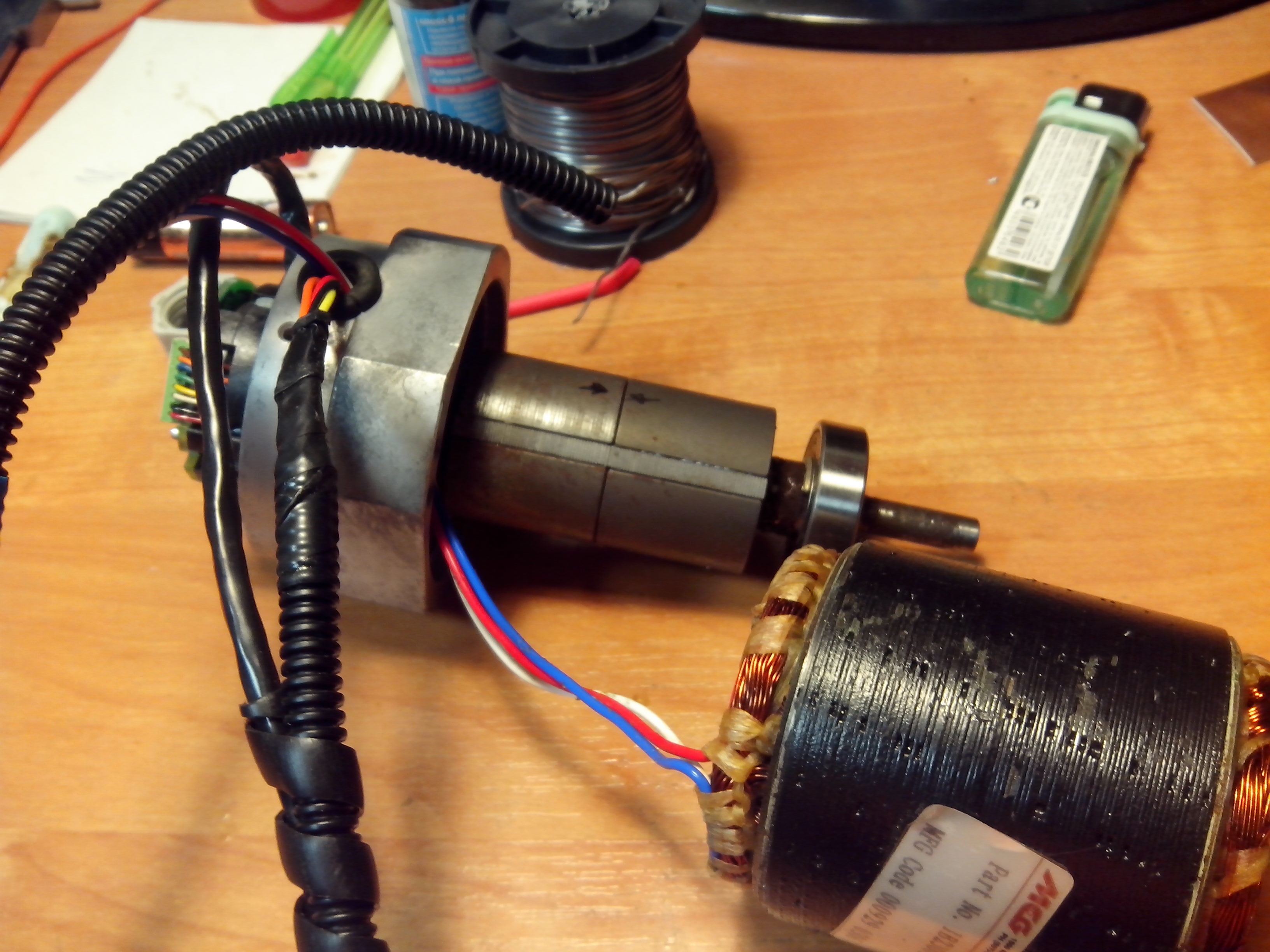 Эпоксидка частично встала. Собрал моторчик, крутится-вертится, ничего у нутре него не трет. Но тест на полных оборотах буду проводить денька через два.