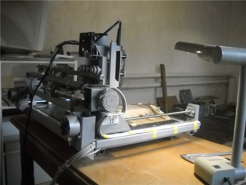 Поперечная - Х от печатной машинки, прикручена к сварной раме портала. Сверху и снизу в канавки вложены направляющие (вал от триммера). Y оси - штоки амортизаторов D18мм, если не изменяет память.. подшипники на осях У - фторопласт, гайки фторопласт и капролон.