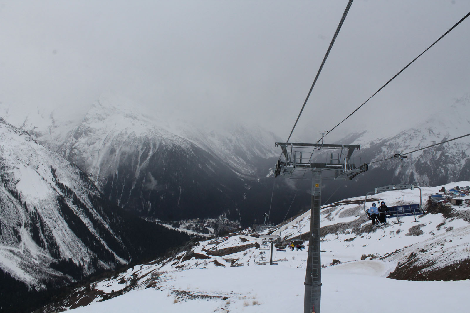 В первый день застали лето - в поселке +16, солнце, чистое небо, наверху прохладно, но ясно и солнечно :) Во второй день - осень, дождик, прохладно, наверху снег с ветром. На третий день в поселке тоже наступила зима - густой снег, легкий морозец, наверх уже не поднимались :)