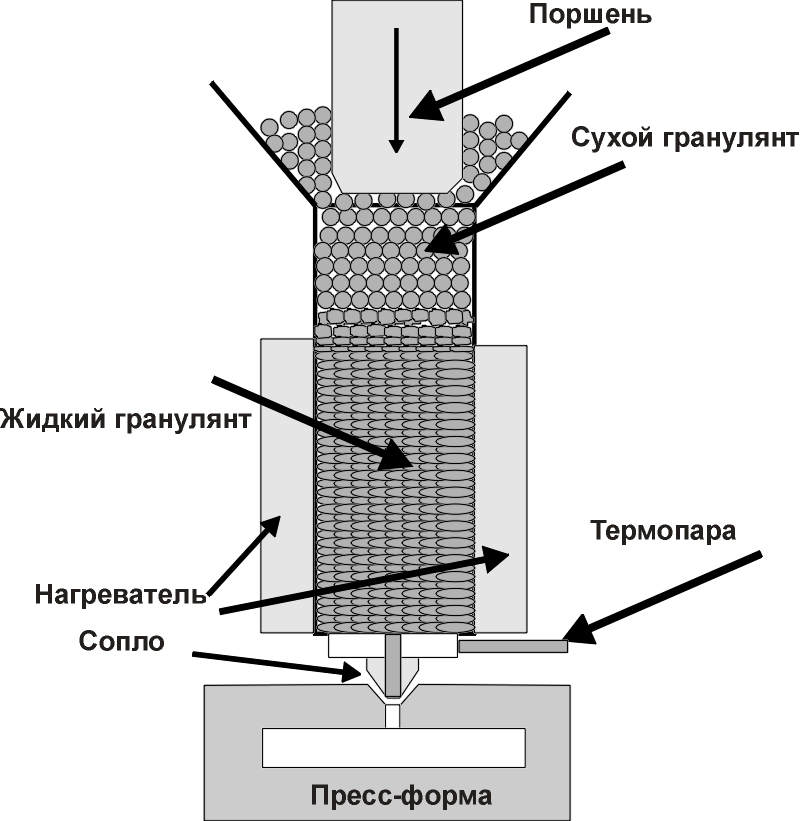 Конструкция моего термопласта в точности схожа с конструкцией, что описана в 9-ом посте, за исключением того что, поршень давился за счет пневматического пресса 3.5 тонны.