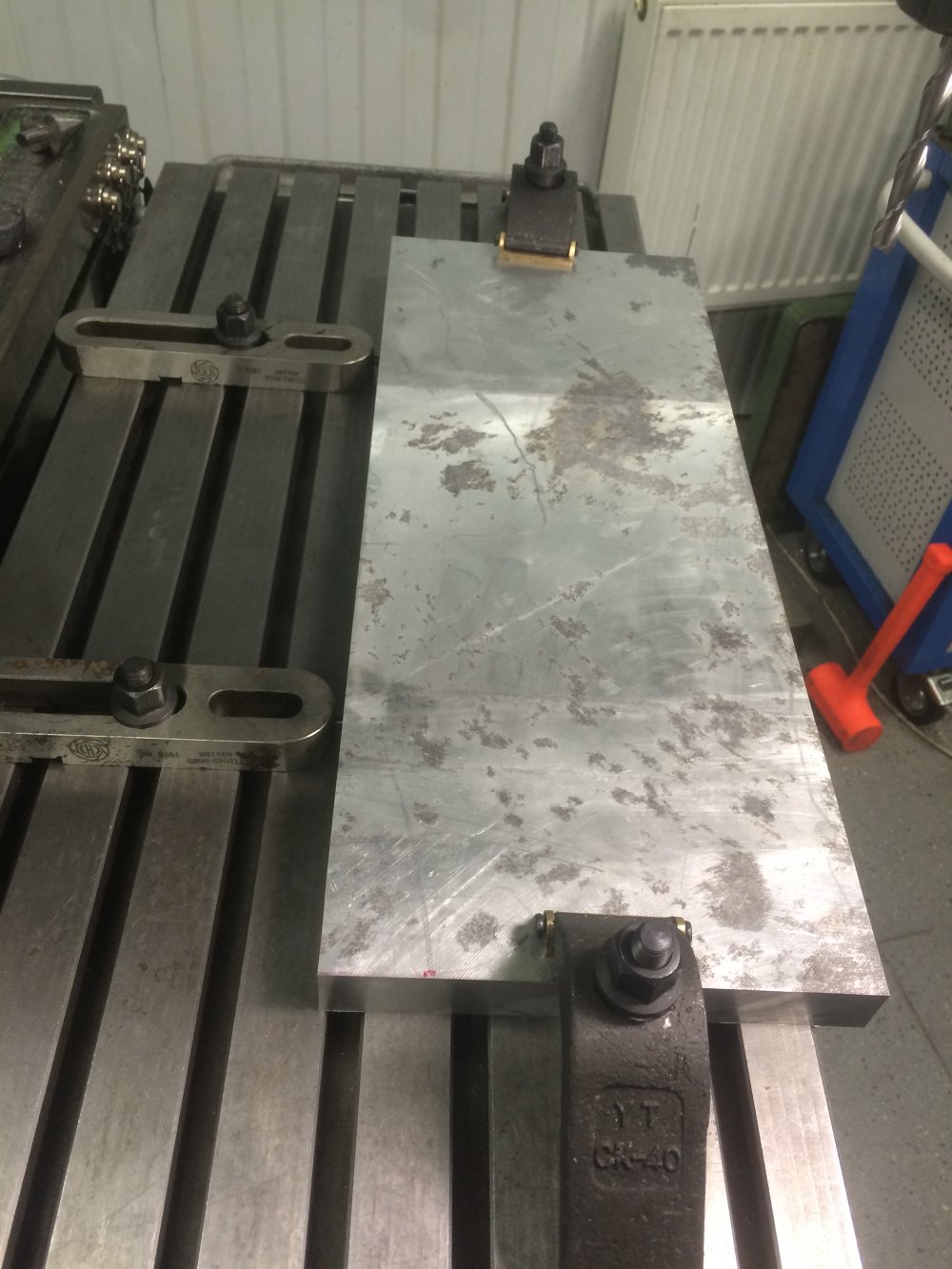 Поверхность ровнял, оперев плиту на параллельки ближе к краям и зажав тисками посередине.