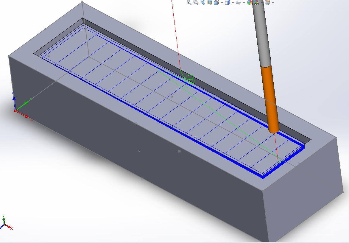 Получилось сделать такое с помощью 3D HSM:Atom42 писал(а):Ну, наверное так это называется. Мне нужно пропилить один из пазов под углом в плите, плоскость которого, под углом относительно к другому. Какую стратегию применить?AlexNikov писал(а):Не совсем пойму что нужно сделать - карман с уклоном "дна"?
