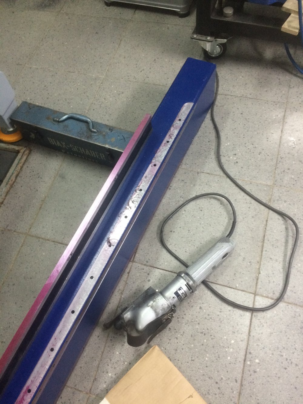 Постепенно, сдвигая каретки крепим рельсы к плите шпинделя.