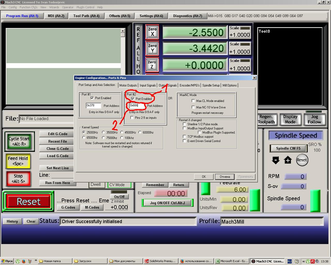 Озадачился мыслью повесить все же на мач дополнительный лпт порт и понял что в интернете информации по этому вообще не найти, наткнулся на эту же тему но на другом форуме (копия), прочитал и даже не понял что это моя тема, как это было давно и никто с тех пор вопрос нормально и не поднял и грамотно нигде не было разжовано что к чему делать, пришлось самому посидеть повтыкать и все вроде как оказалось достаточно просто, меняем в маче порты местами, прописываем 378 порт как порт номер два, и все вроде как работает, теперь можно писать макросы которые из гкода будут управлять разными процессами в станке, будь то подача воздуха или масляного тумана, или обдув центроискателя или датчика высоты. Для себя даже записал видео чтобы не забыть что делал.