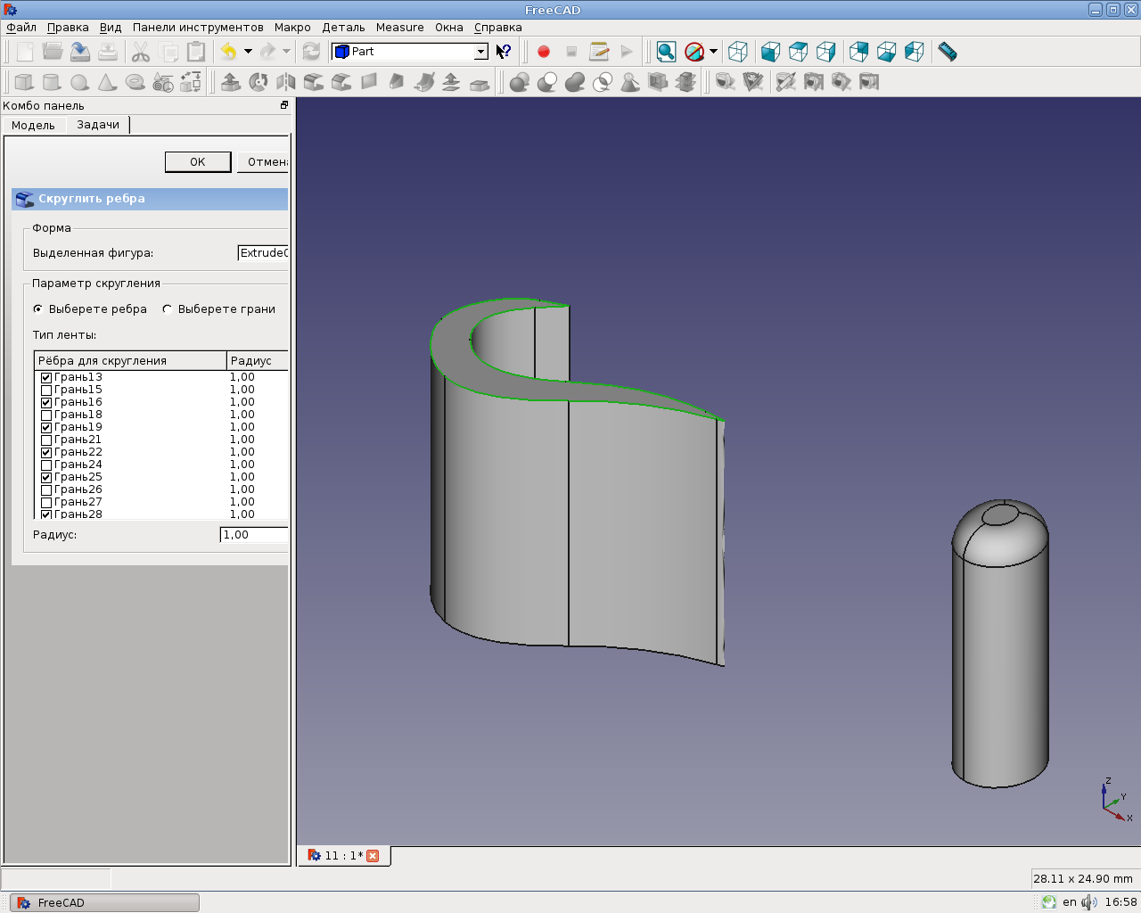 Не хочет снимать freecad фаски и скруглять грани простеньких деталек. С правой получилось, с левой не хочет. Деталь пропадает с экрана, в модели висит fillet с ошибкой. Еще уходит в ошибку, если применить скругление/фаску к грани, примыкающей к уже скругленной. С этим можно бороться?