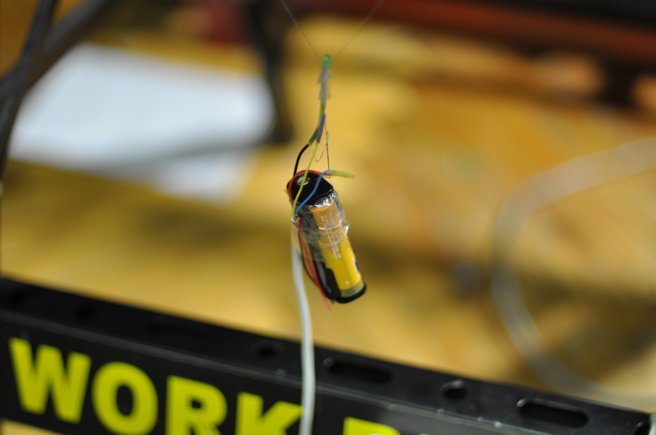 Теперь болтается провод вниз от батарейки. Сам блок выглядит так (знаю, что колхоз, но это только для проверки, не ржать :D! ):