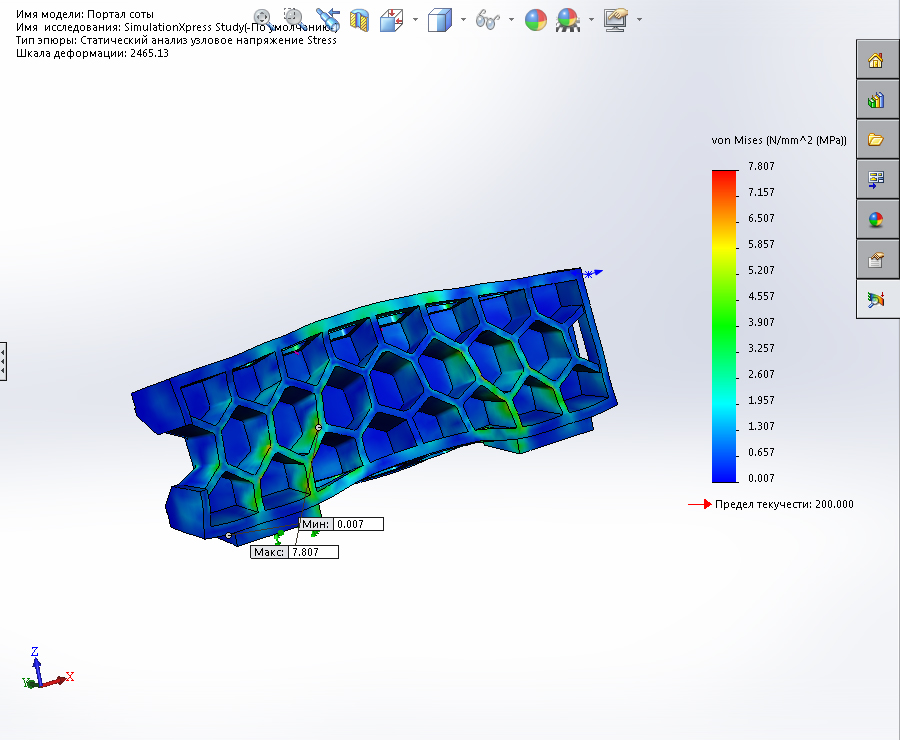 Результаты похожи, но если судить по цвету, то по сотам более равномерно расходится нагрузка. Может кто даст более развёрнутый комментарий по симуляции - я только учусь...