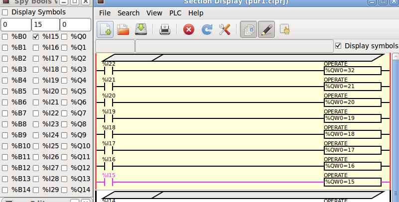 Запускаем ладдер,пробуем замыкать контакты %Inn.