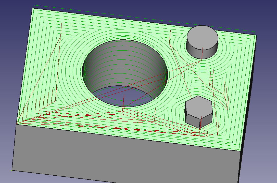 2. При обработке карманов все ничего, пока карман не круглый. Если карман - это цилиндр (одна замкнутая грань), то, почему-то траектория в отверстие не попадает. Она смещена куда-то в сторону от детали. И никакие на нее не влияют настройки.