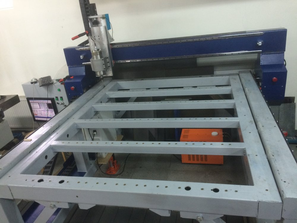 Чтобы стол закрыл металлический каркас, его пришлось сделать больше, чем поле обработки. Ровнял с помощью дополнительного шпинделя.