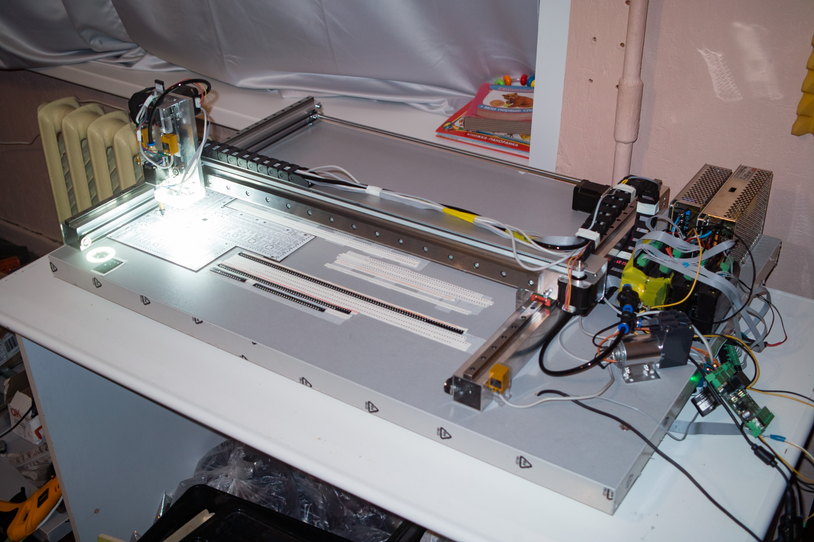 Планирую сделать направляющие для лент и держатели для катушек, тогда для помещения компонентов на стол потребуется лишь сдвинуть ленту до метки и сбросить позицию последнего элемента в программе.
