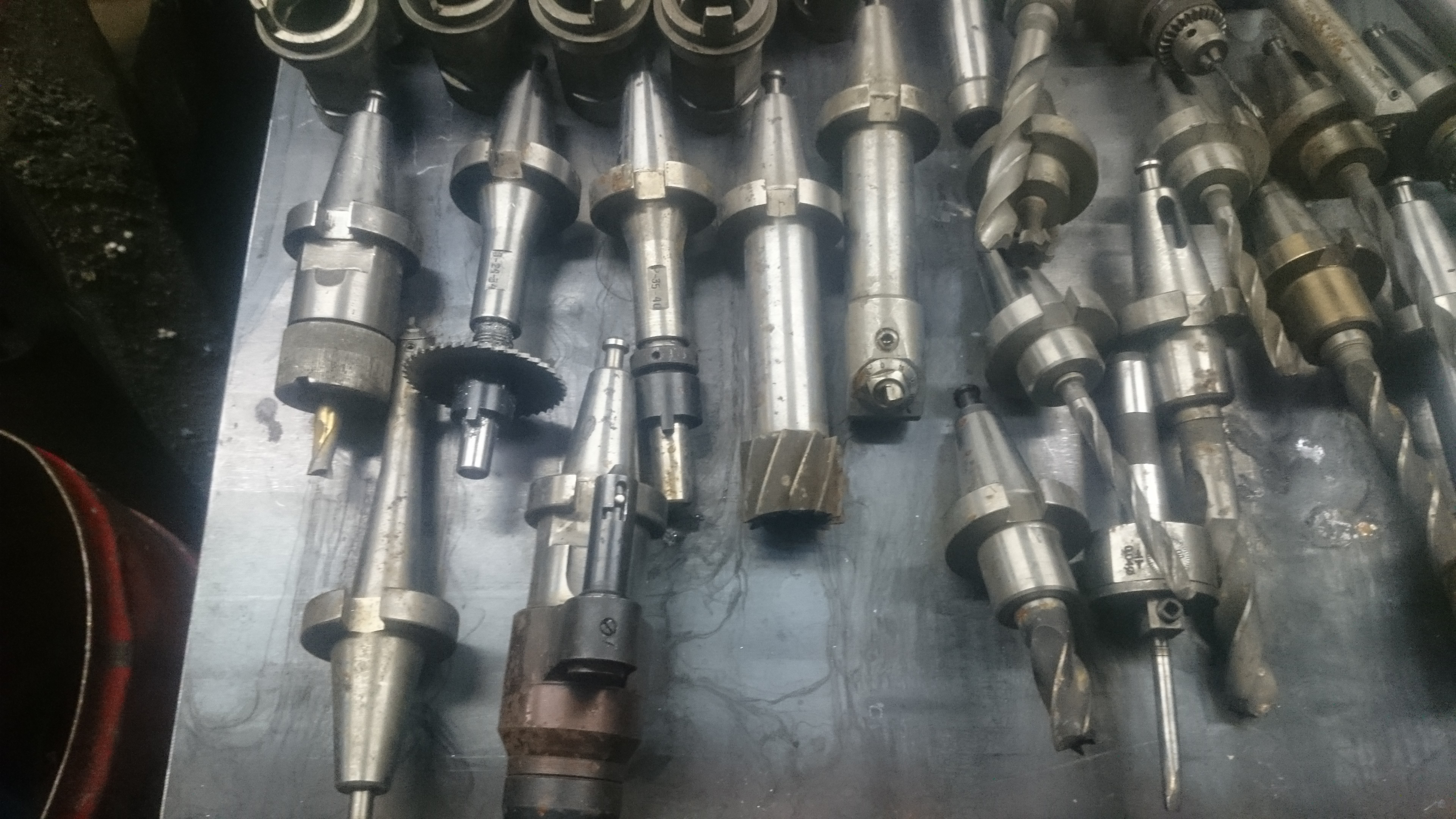 Складывается мнение, что станком вообще не пользовались. Все обоймы под автосмену в консервационной смазке, работала только одна, которая сейчас торчит из шпинделя и чутка подржавела. Судя по состоянию стола на четвертой оси, сверлили мелкими сверлами в рукопашную, ибо там все в следах сверления, зачастую насквозь.