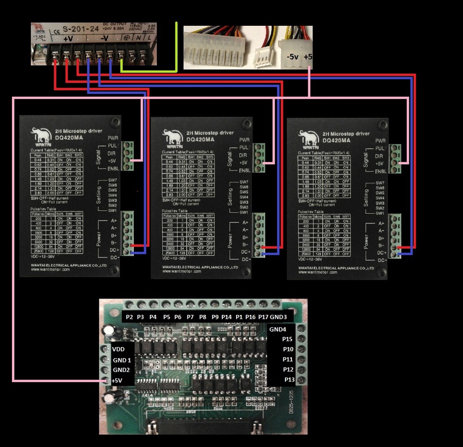 Купил комплект электроники лля ЧПУ от магазина Wantai motors: драйвера dq520ma, шаговики нема 23 и плата опторазвязки db25-1205 черного цвета. У кого нибудь получилось заставить эту платку работать, а то я три дня с ним боролся так и не смог его заставить заработать, в итоге пришел к мысли что плата неисправная. Компа с виндой хр пока нет, подключал все это через ардуино и грбл, драйвера если напрямую к ардуине подключить то нормально работают а вот если db25-1205 через ардуинку не хочет работать. Моторы заклинены и не двигаются хотя я и подключал к энейбл и плюс и минус и даже равно ))).