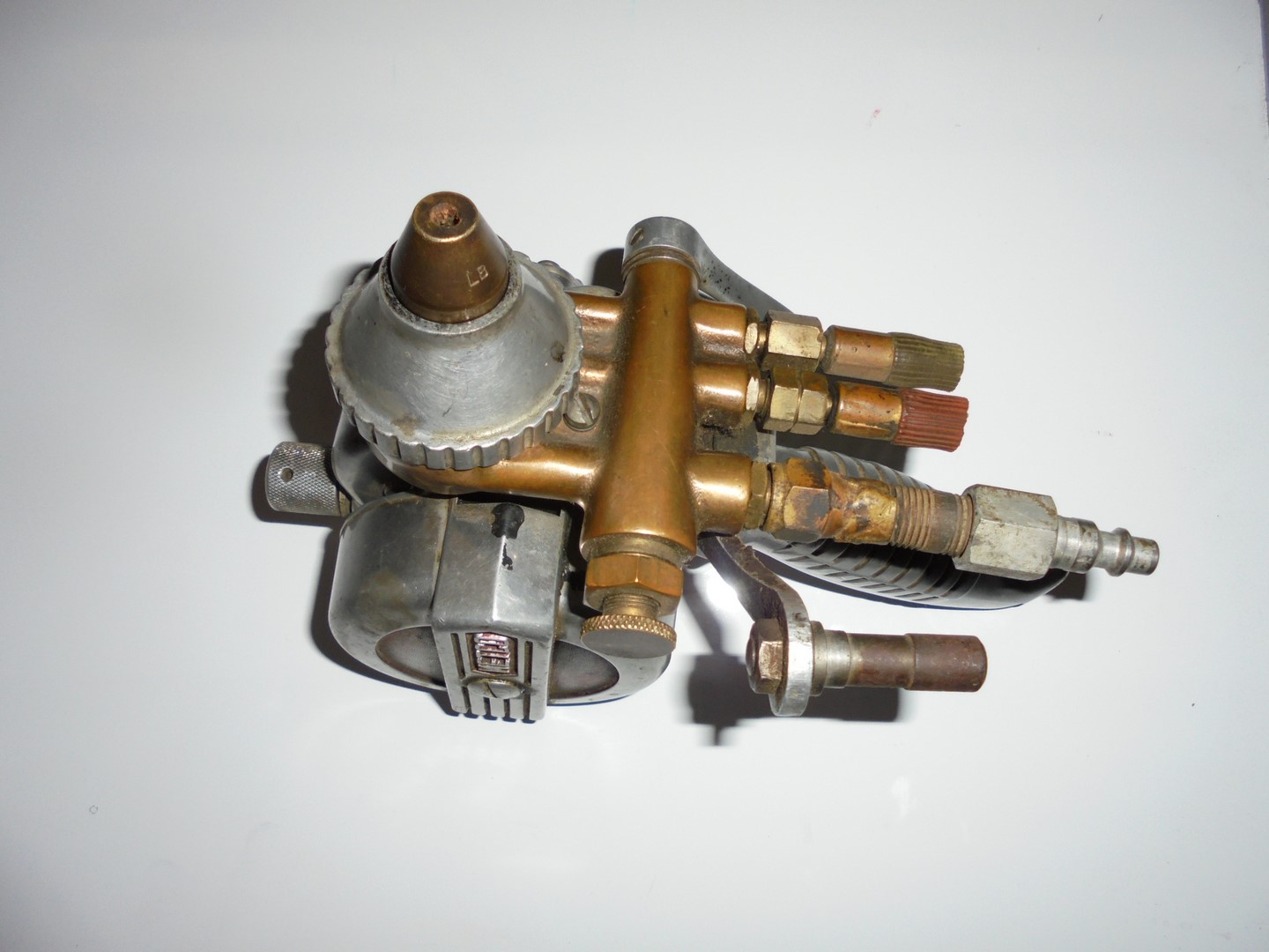 Пистолет для металлизации(напыления). Работает так: подается газ горючий + О2. Пламя плавит проволоку которая проходит через сопло. Расплавленные капли "плюются" на поверхность и прилипают.
