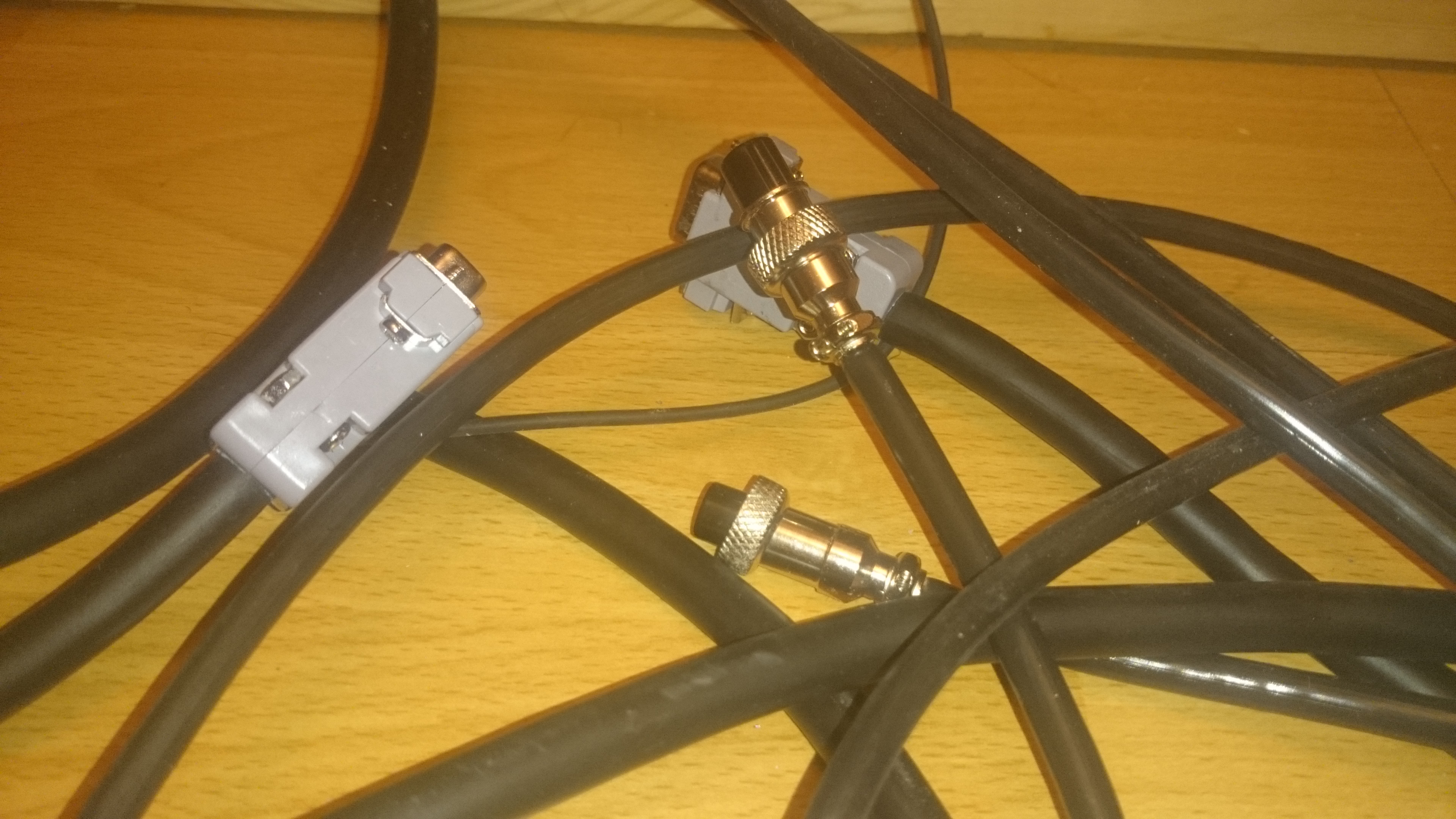 Закончил с пайкой разъёмов, временно припаял вторые, немного заземлил и замотал лишнее скотчем:
