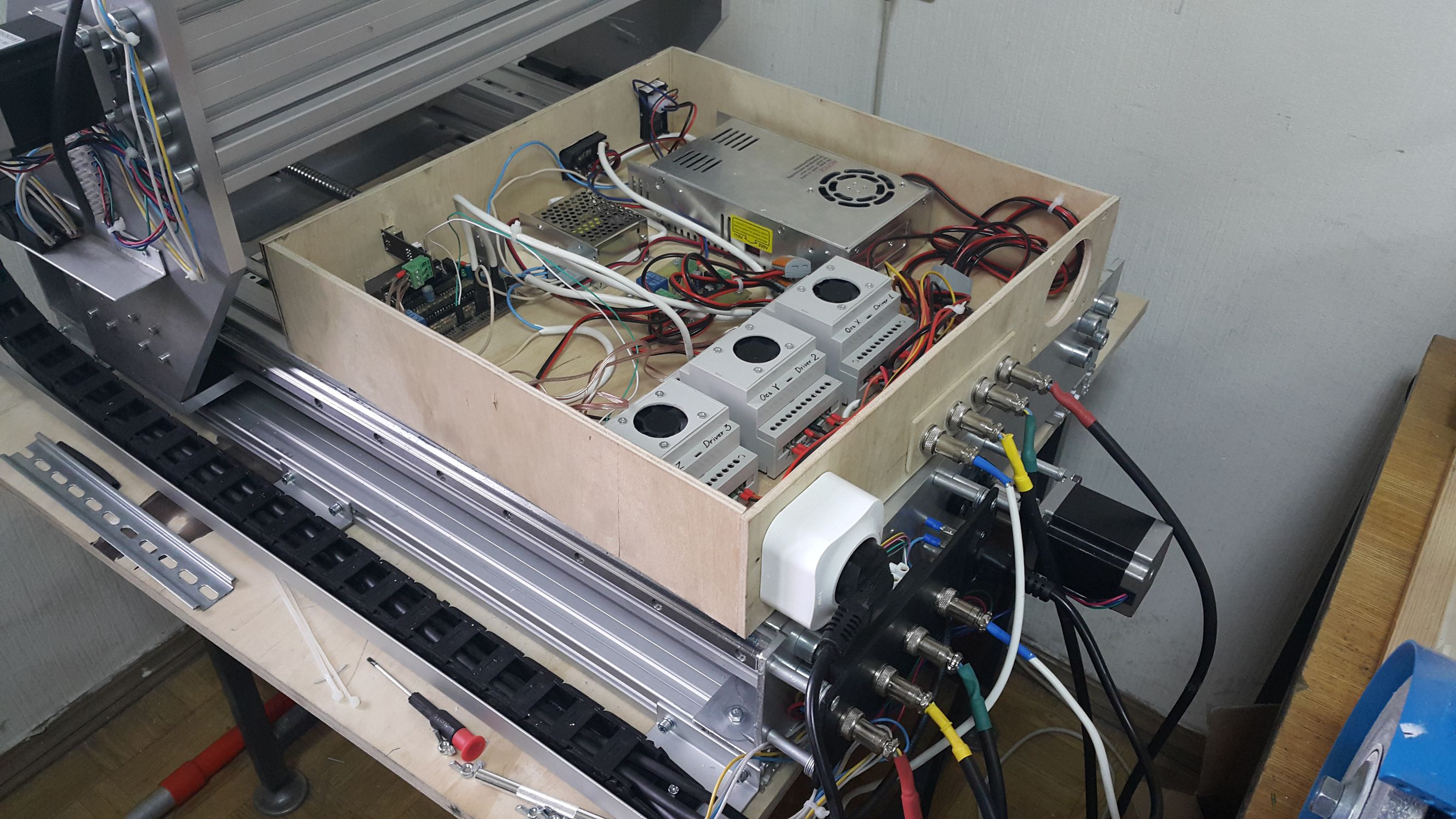 Укультурил провода, завтра забираю маленькие вентиляторы, установлю их на драйвера и буду подключать. Станок с пола переехал на стол, спина гудеть перестала ))))
