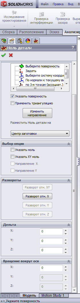 -1,0,0 - это задаст напрвление оси X в противоположном направлении(её красная стрелка появится на модели)