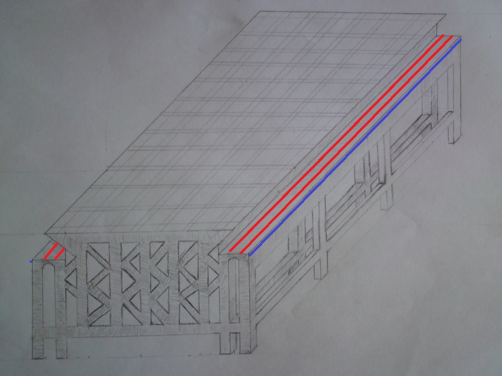 Ось Y то есть весь портал в целом, на каждую сторону поставить по одному серво,1.5 квт, через планетарный редуктор, по касозубой рейки, на рисунке указанна синей полосой почему именно через планитарку, во первых, разгружу усилия на серво, тем самым увеличу его срок службы и дабьюсь более сильной тяги, во вторых управление данной оси станет более плавным и точным, трансмиссия, по две рельсы на каждую сторону, на рисунке указана красной полосой.